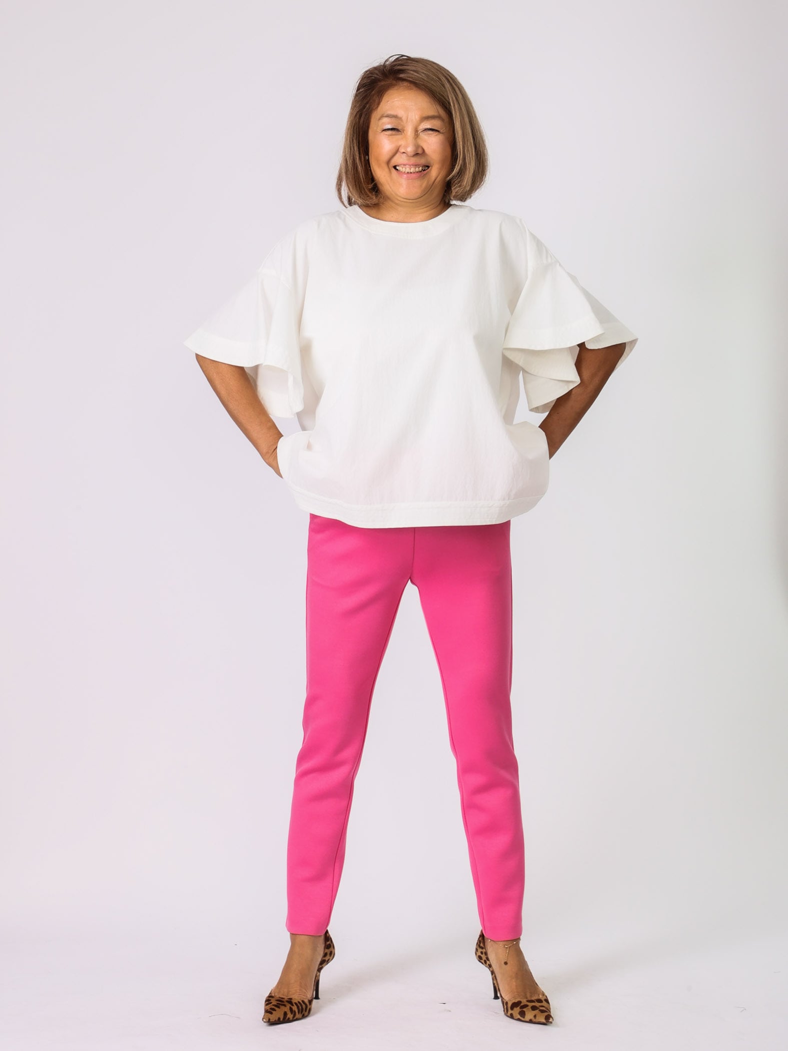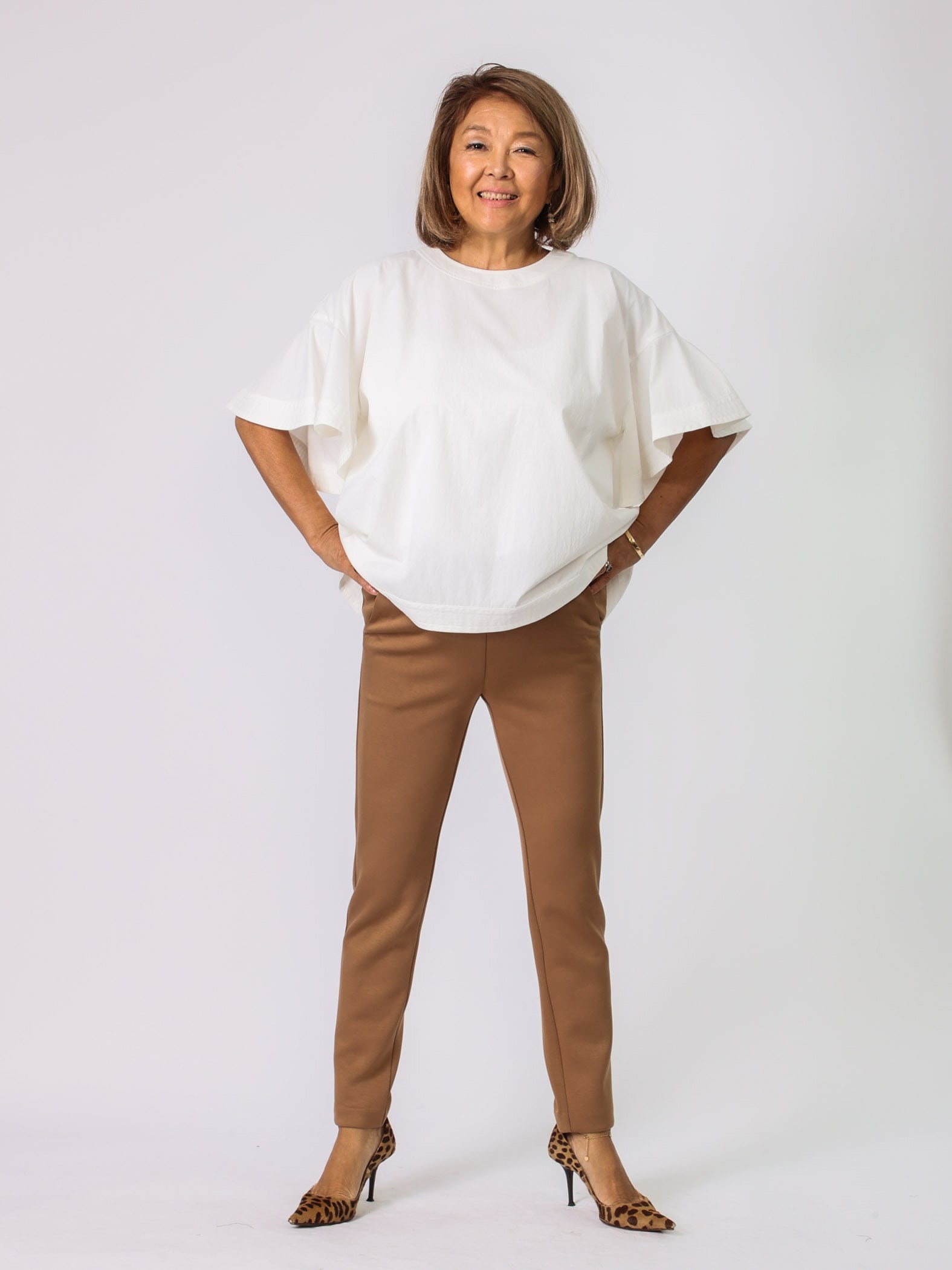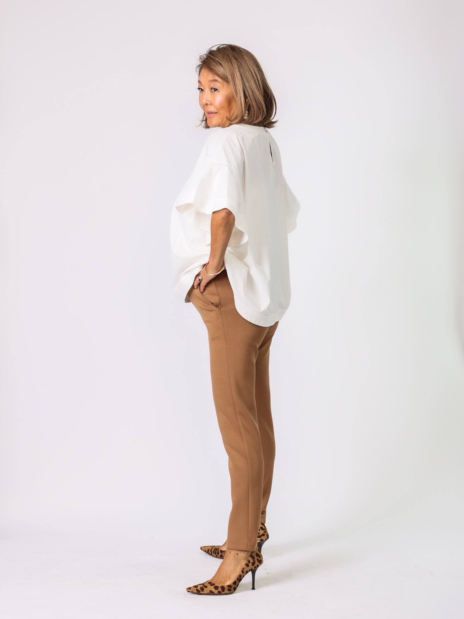 秋冬はトップスにボリュームがあるので、細身のパンツがピッタリ。
