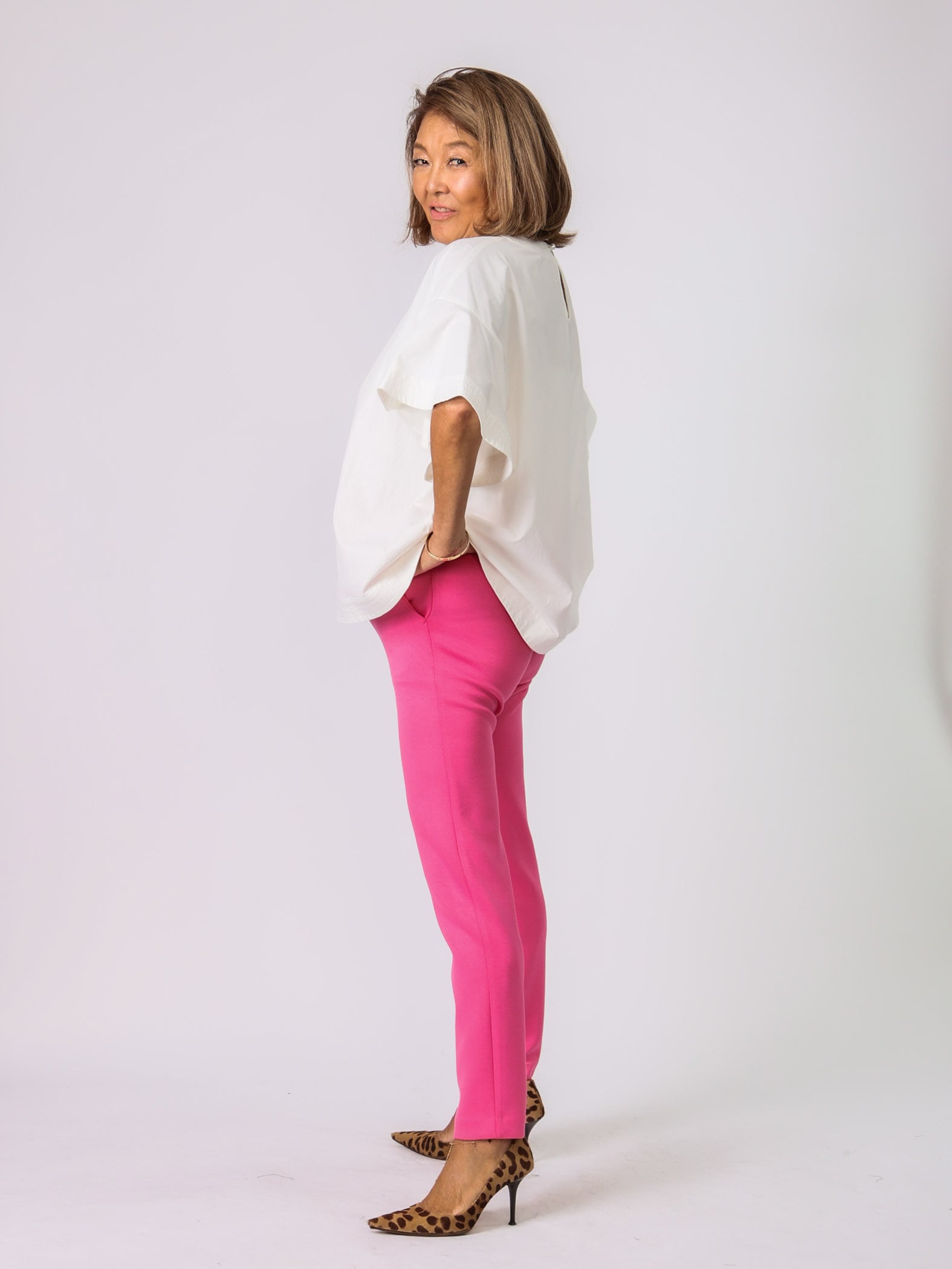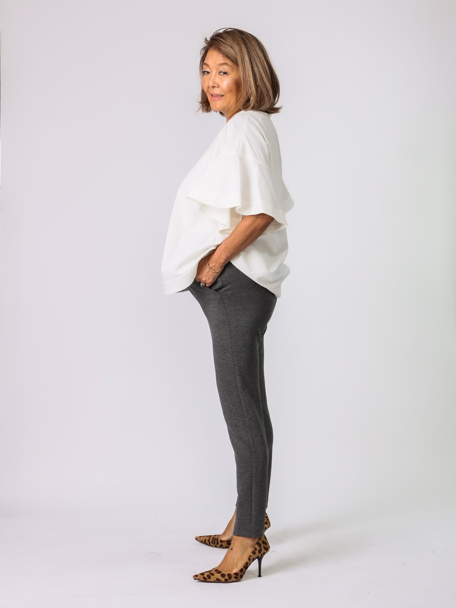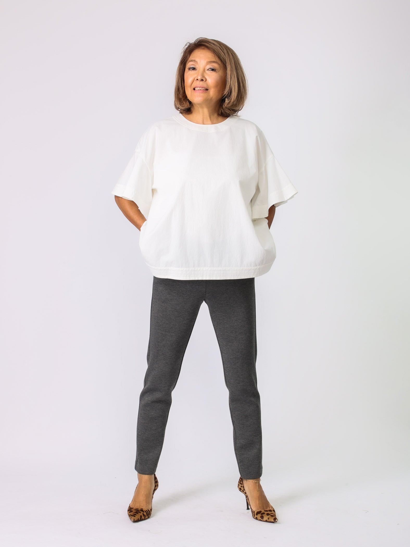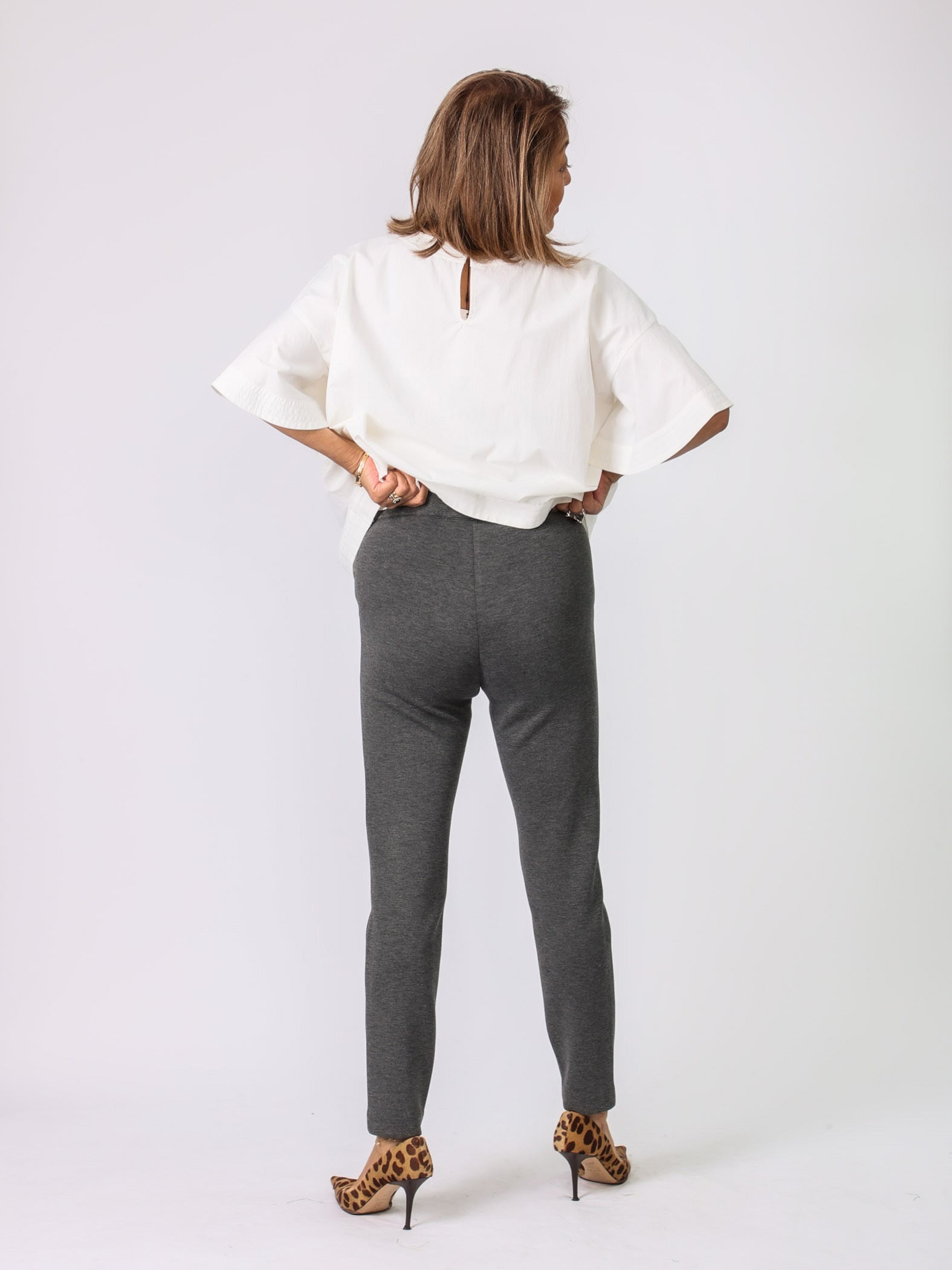 秋冬はトップスにボリュームがあるので、細身のパンツがピッタリ。