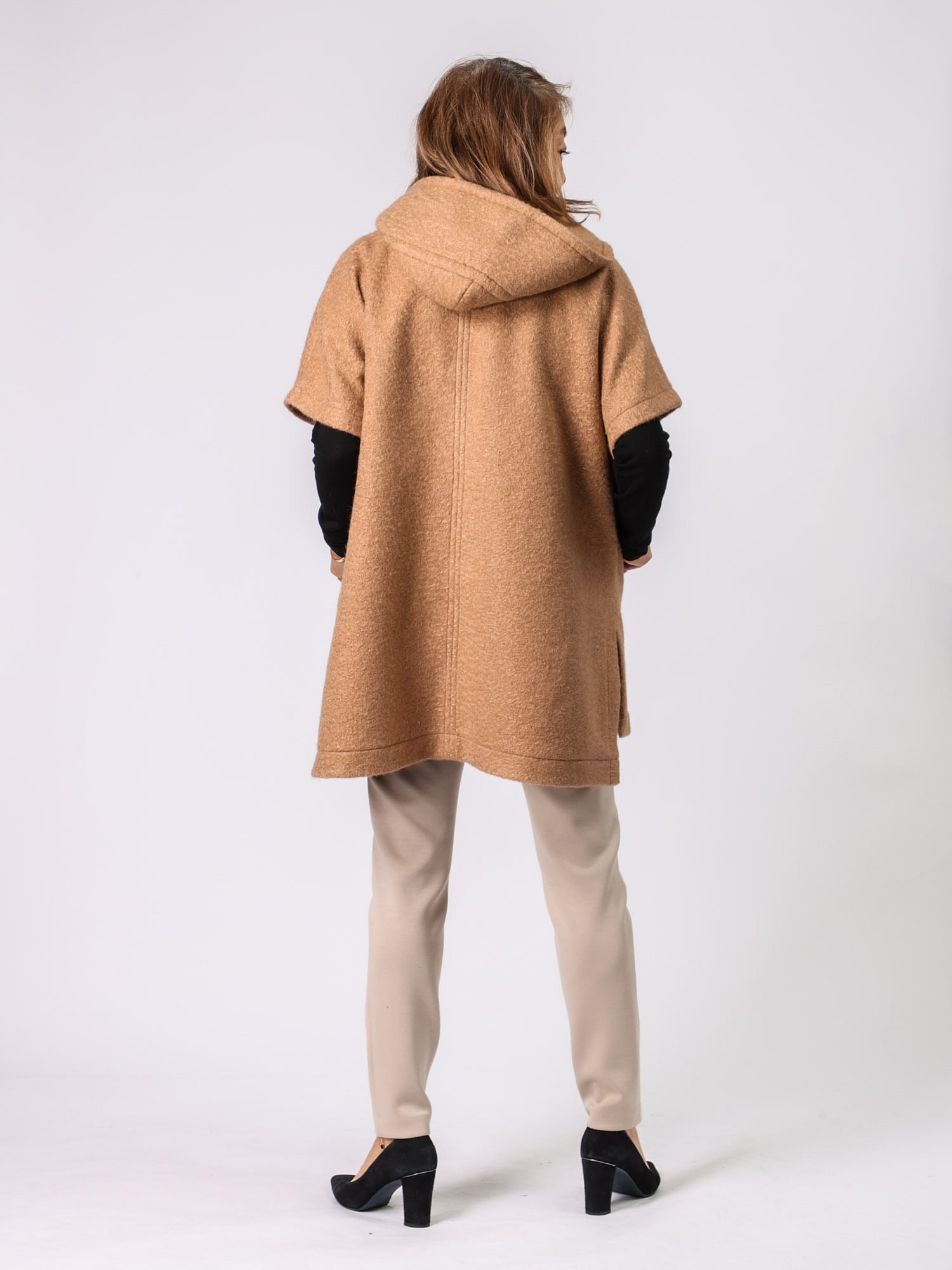 軽くて温かく、ラインがすっきり見えるポンチョ。