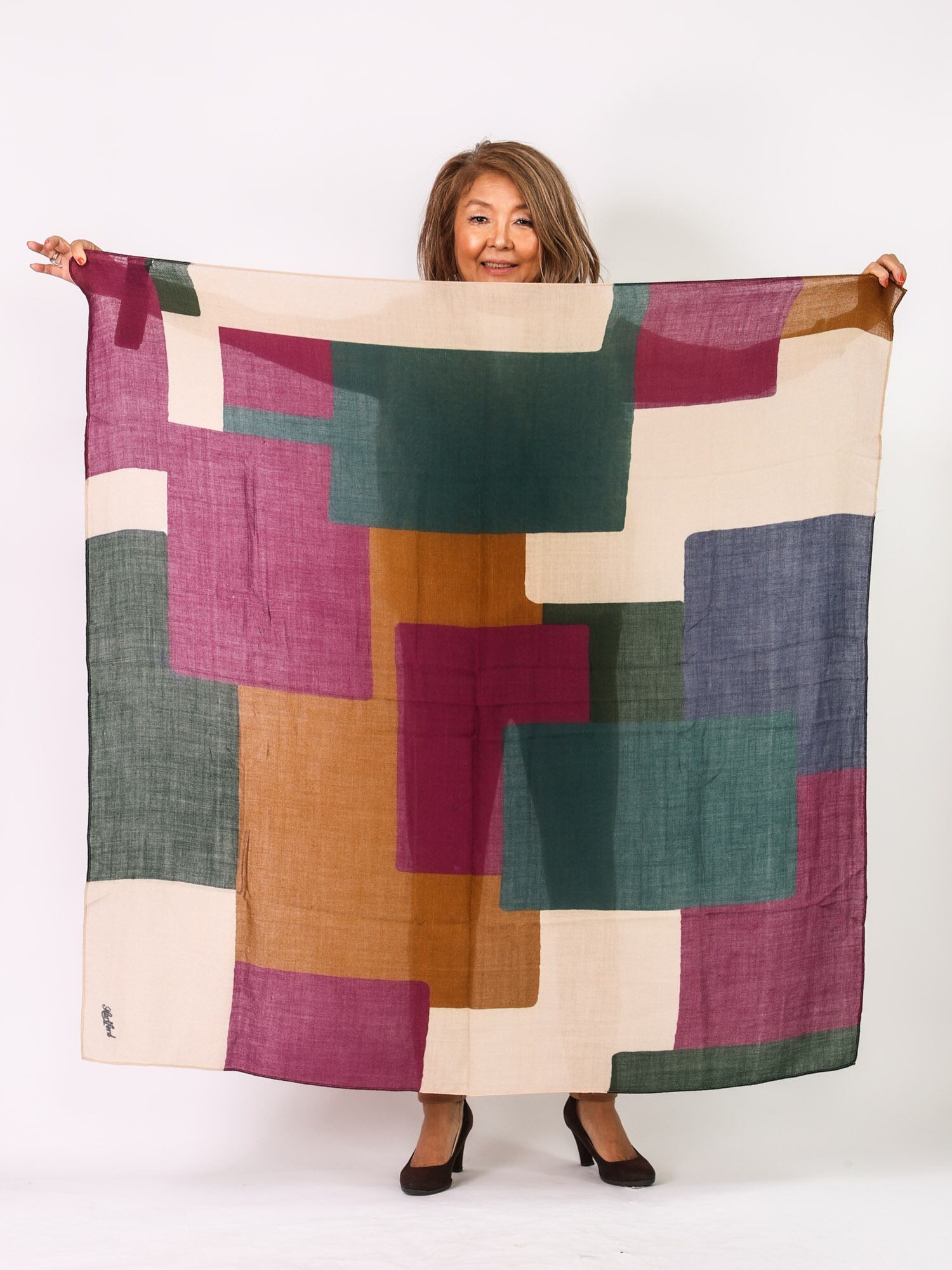 色の配色が素敵でオシャレな幾何学柄大判ストール。