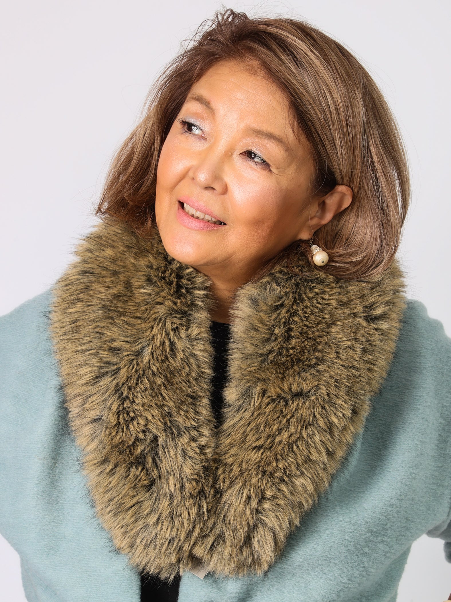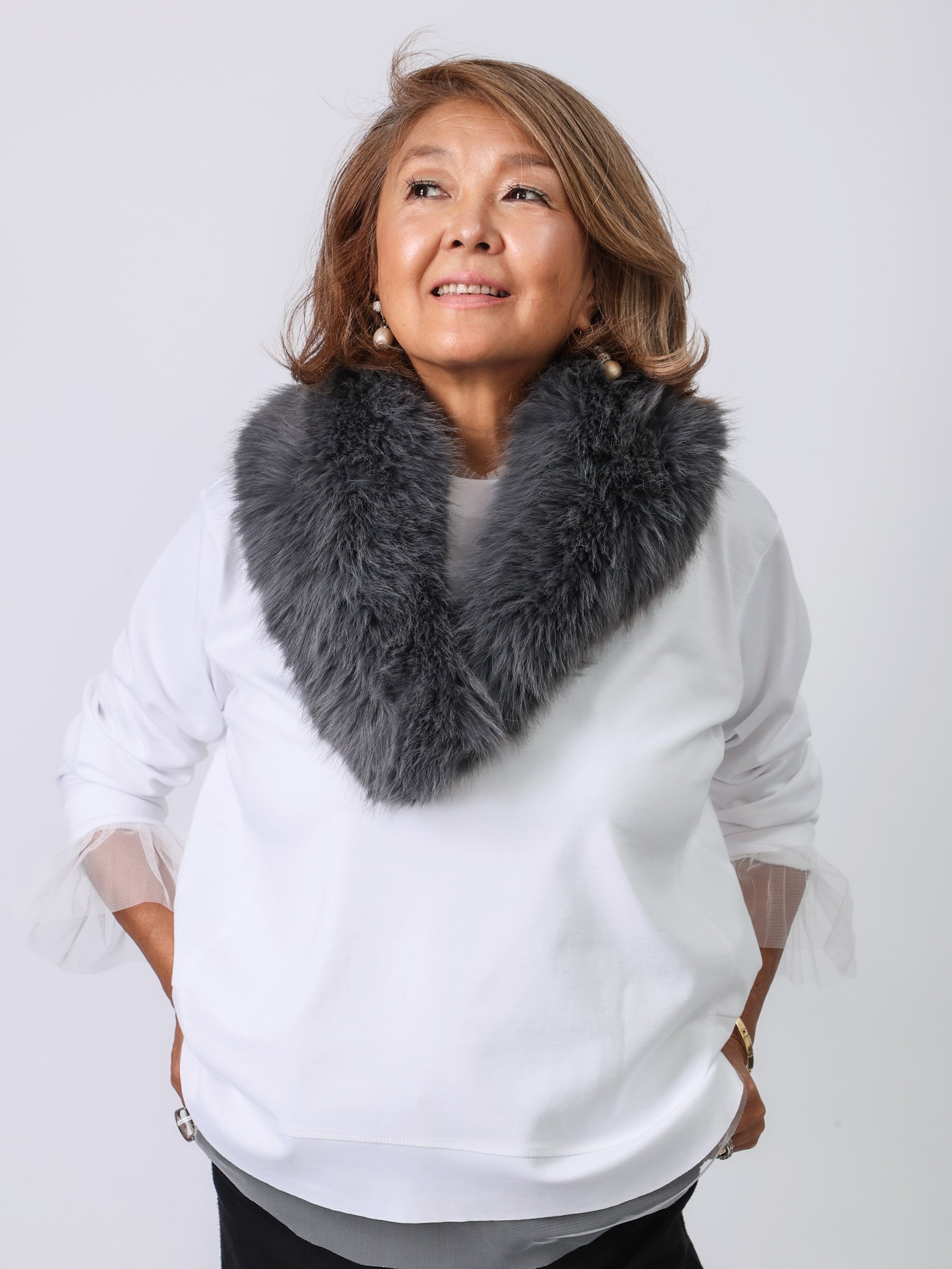ボリューム感があって、リアルに近いフェイクファーショール。