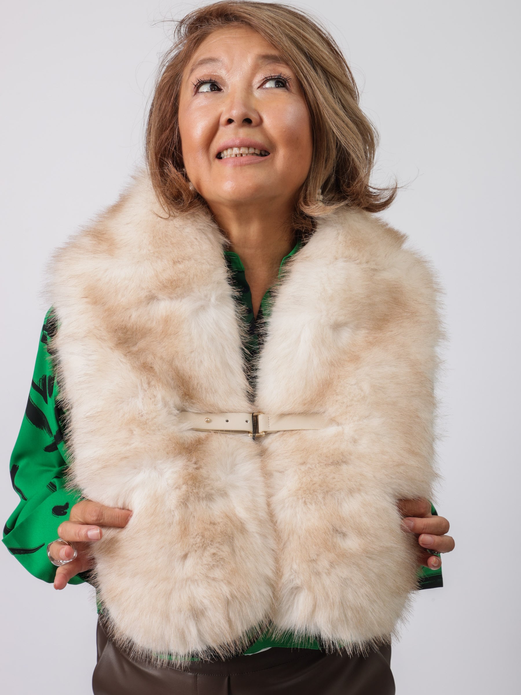 毎年あっという間に完売してしまうベルト付きファーショール。