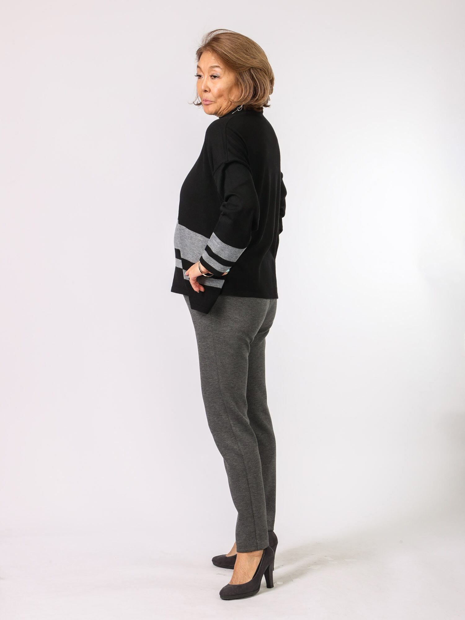 高すぎないハイネックが小顔効果あり、