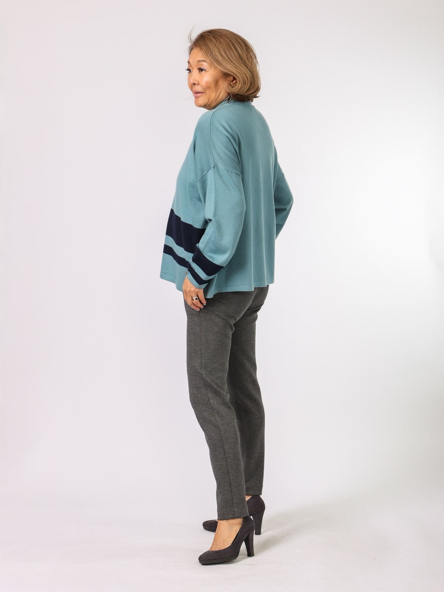 少しゆったりしたでシルエットで落ち感が女性らしいアイテムです。