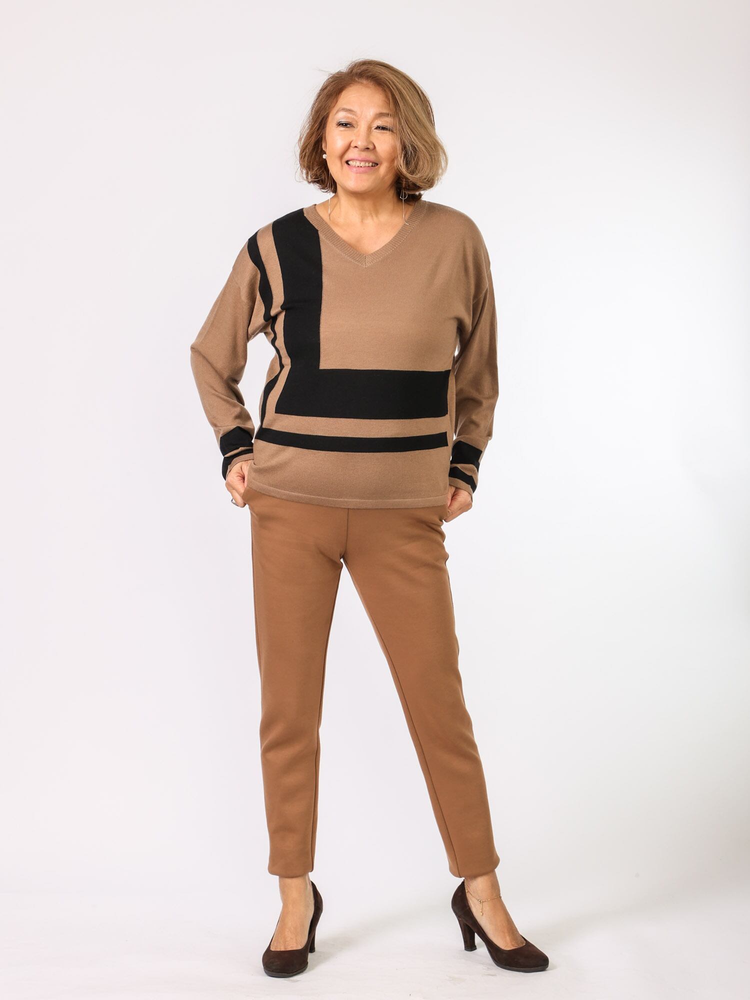 幾何学的なラインをインターシャ編みで表現しております。