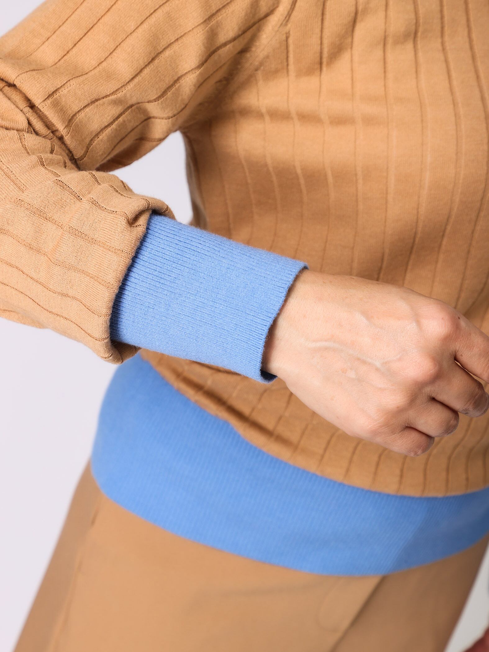 2色使いでジレやジャンスカとのレイヤードスタイルにもポイントになる1枚です。