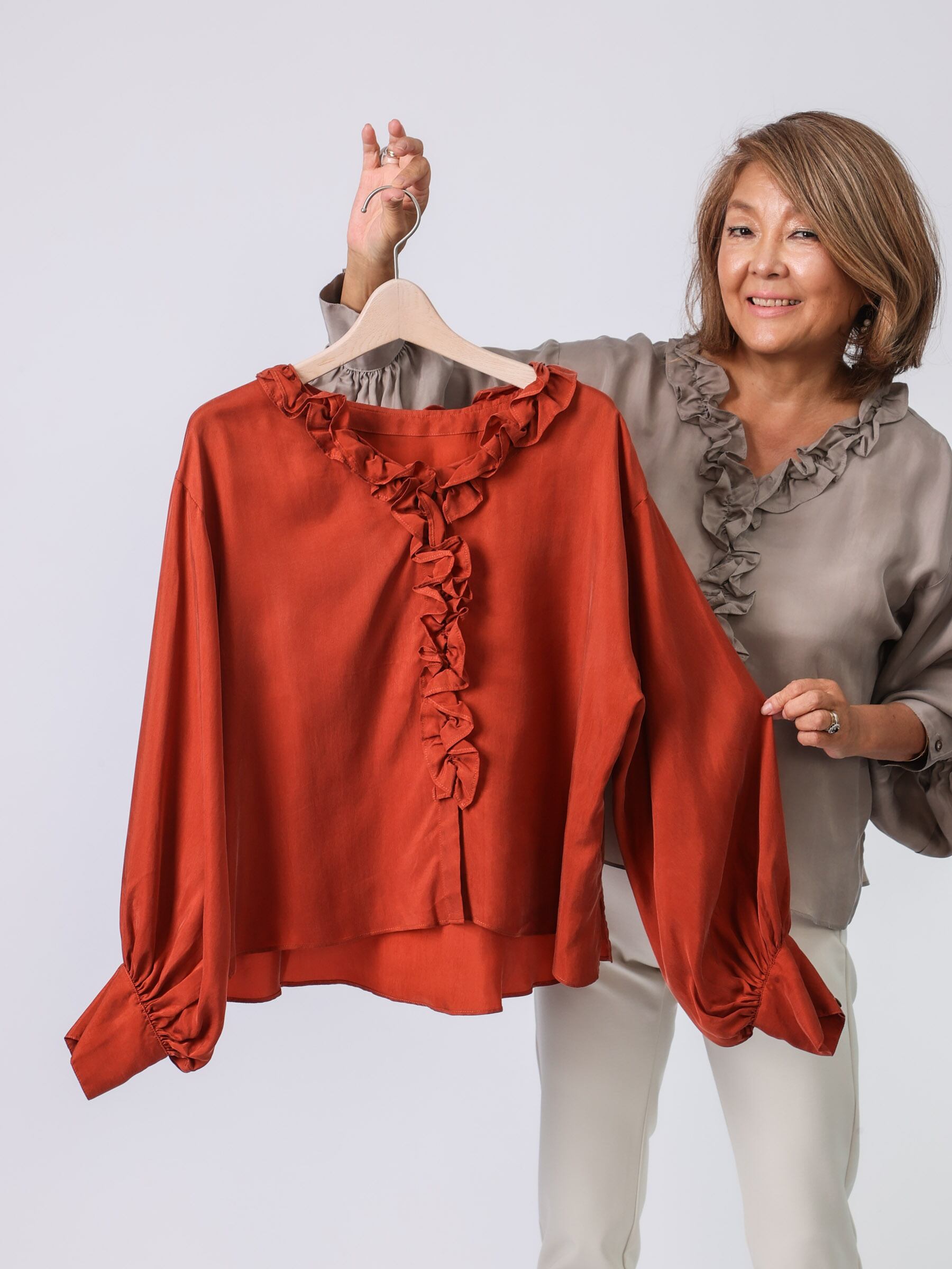 フェミニンで上品なデザインが魅力のフリルブラウス。