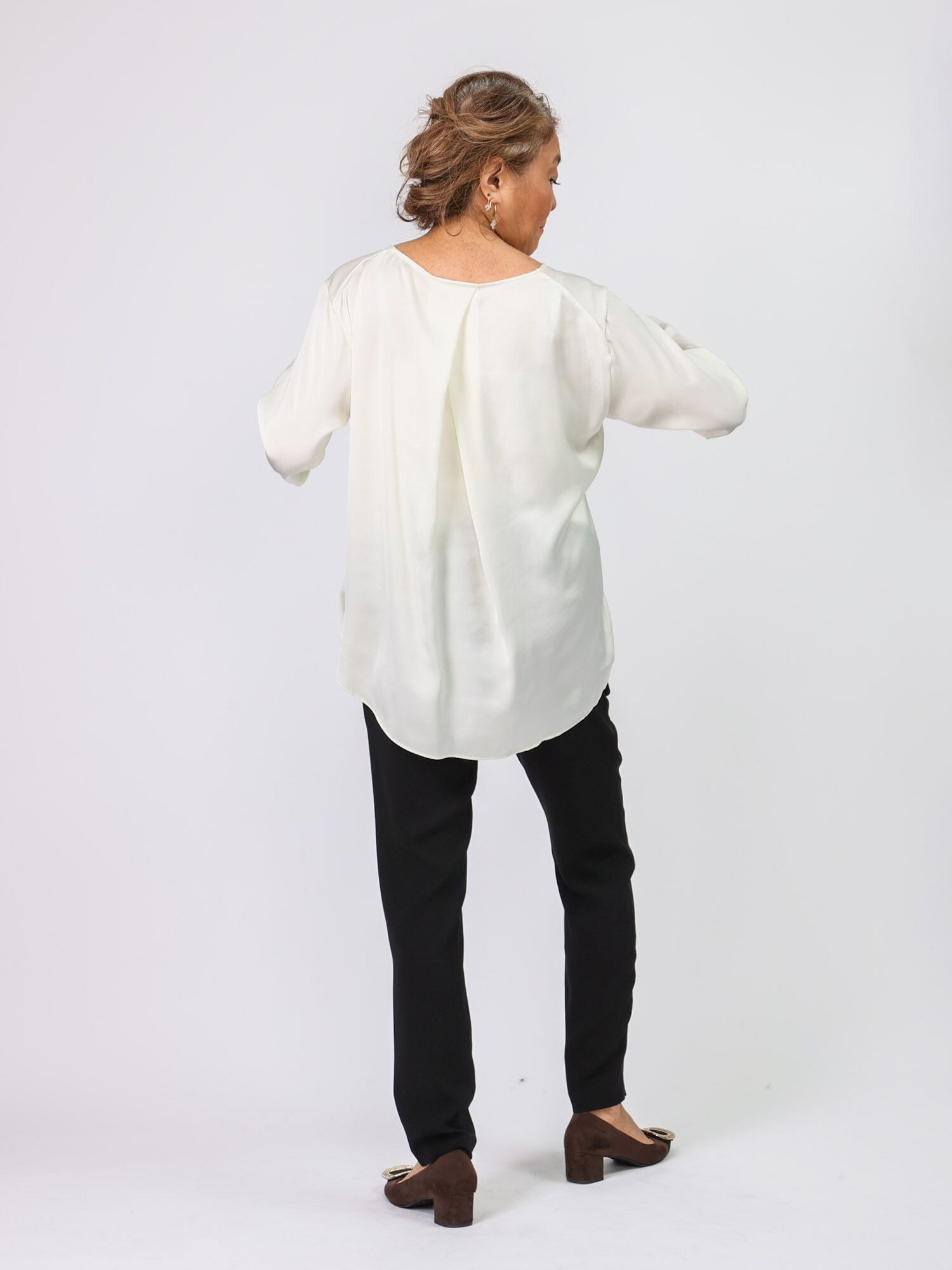 ジャケットやブルゾンのインナー、ニットとのレイヤードにも使える1枚です。