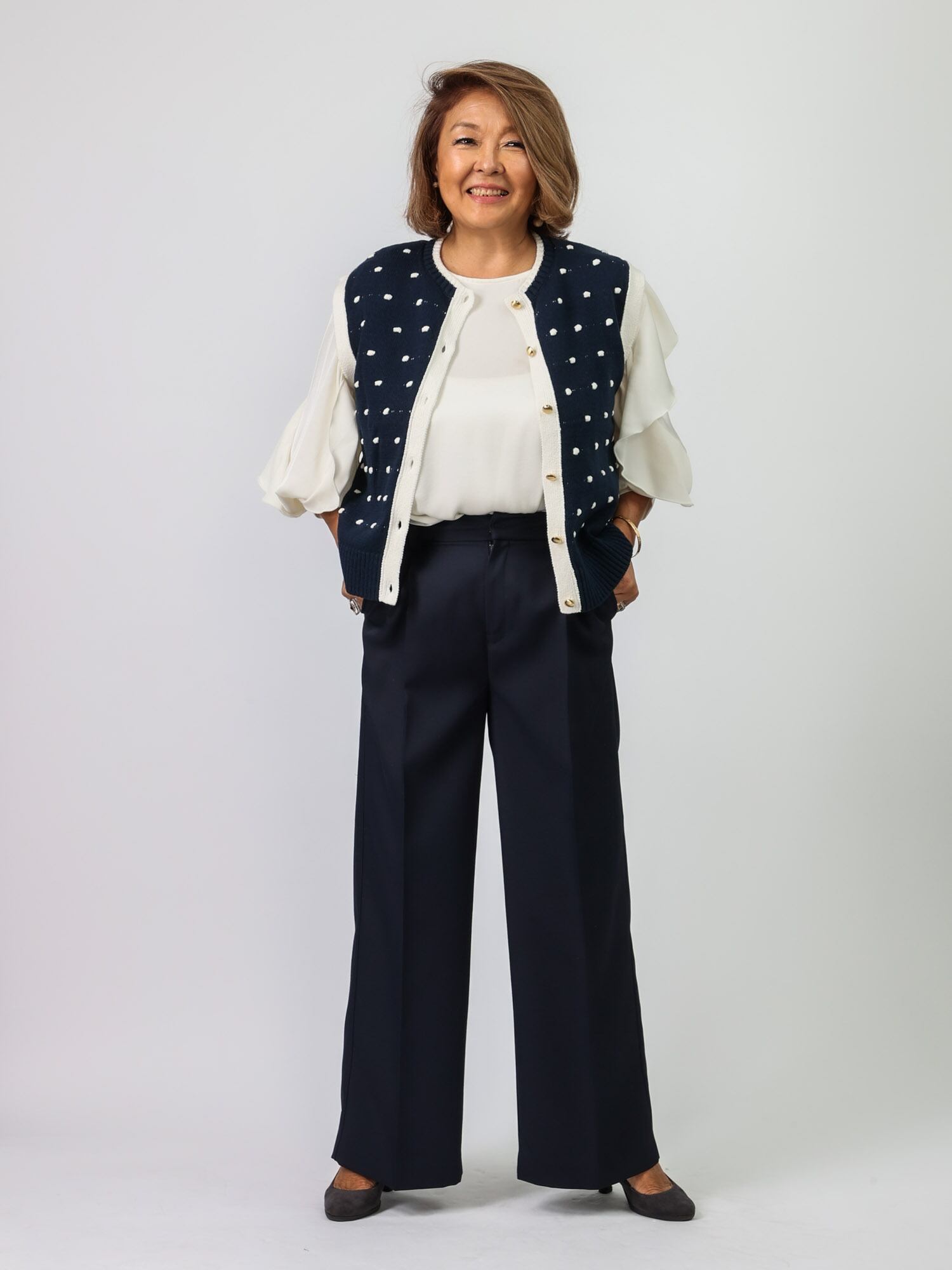 程よい広がりのあるシルエットが脚を長く美しく見せてくれるパンツです。