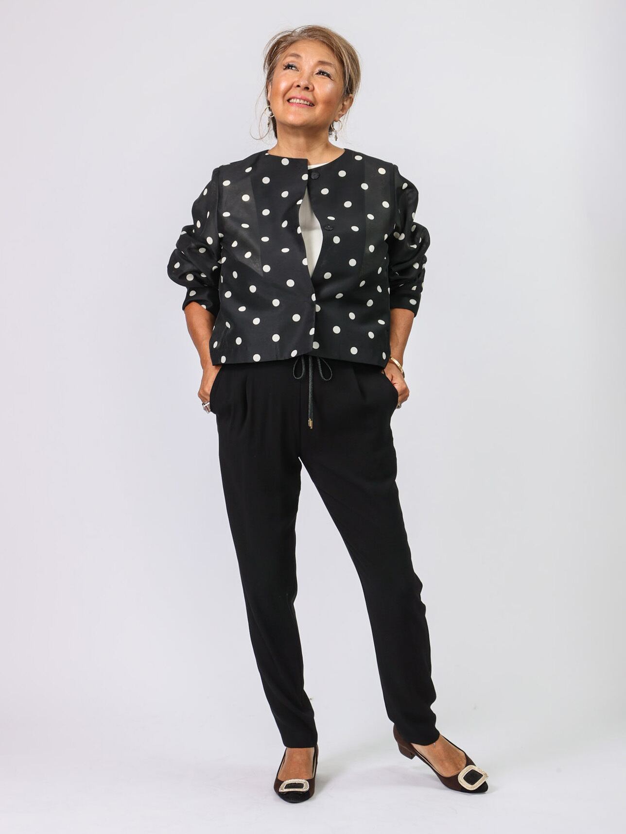 ハリ感とナチュナルな表面感にドットをプリントしたスパンオーガンジー。