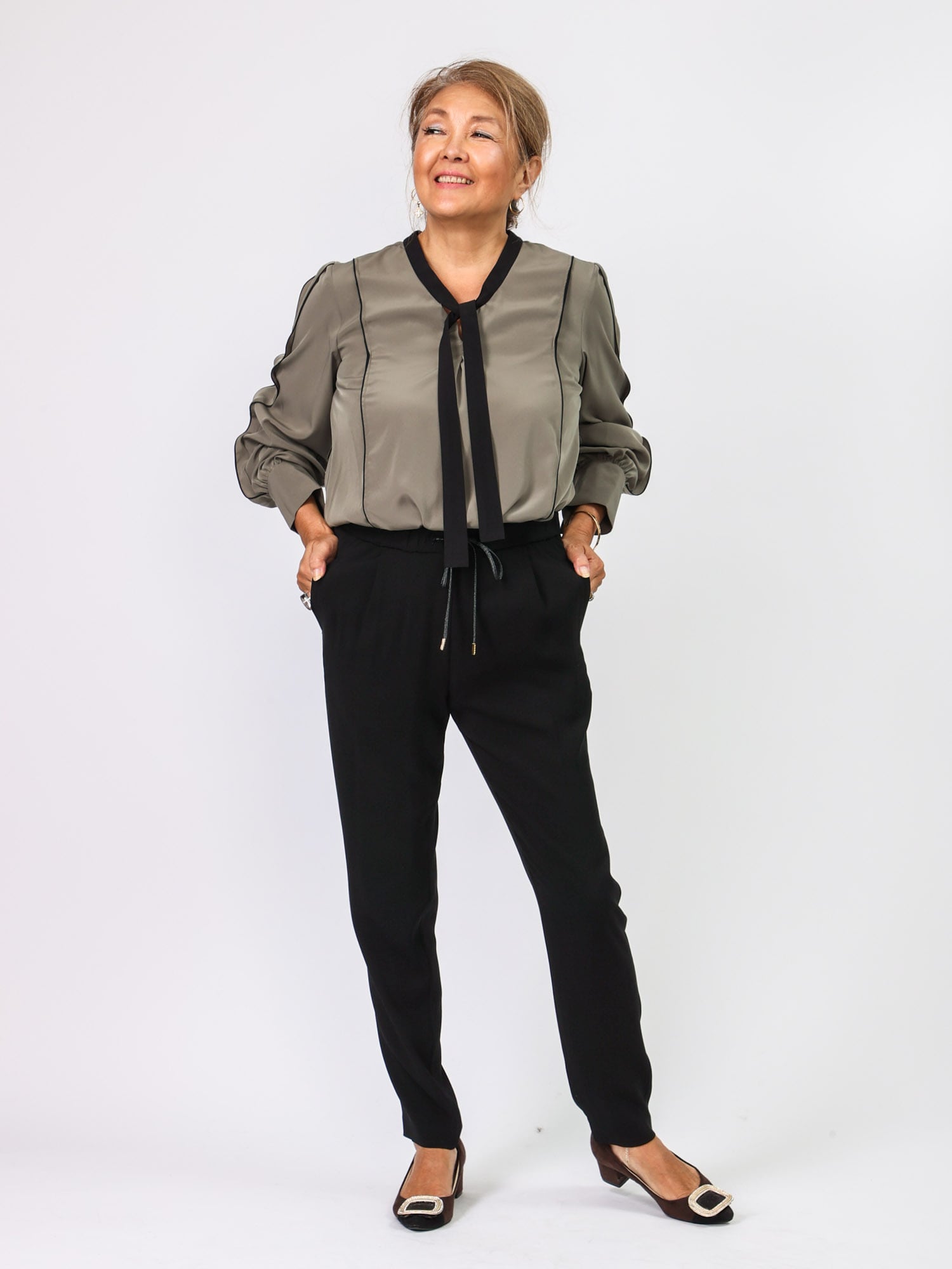 配色メロー&配色ボウタイブラウス(BRAHMIN)