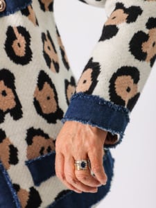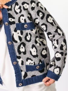 インポート(ヒョウ柄デニムトリミングカーディガン)