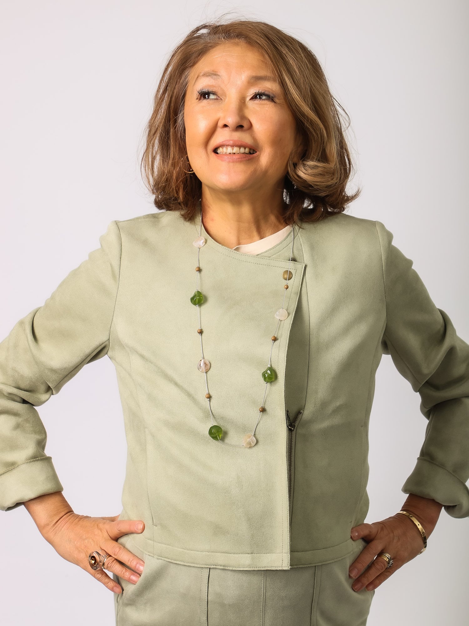 軽快なレングスで幅広いボトムにマッチし、春先のアウターとして大活躍。