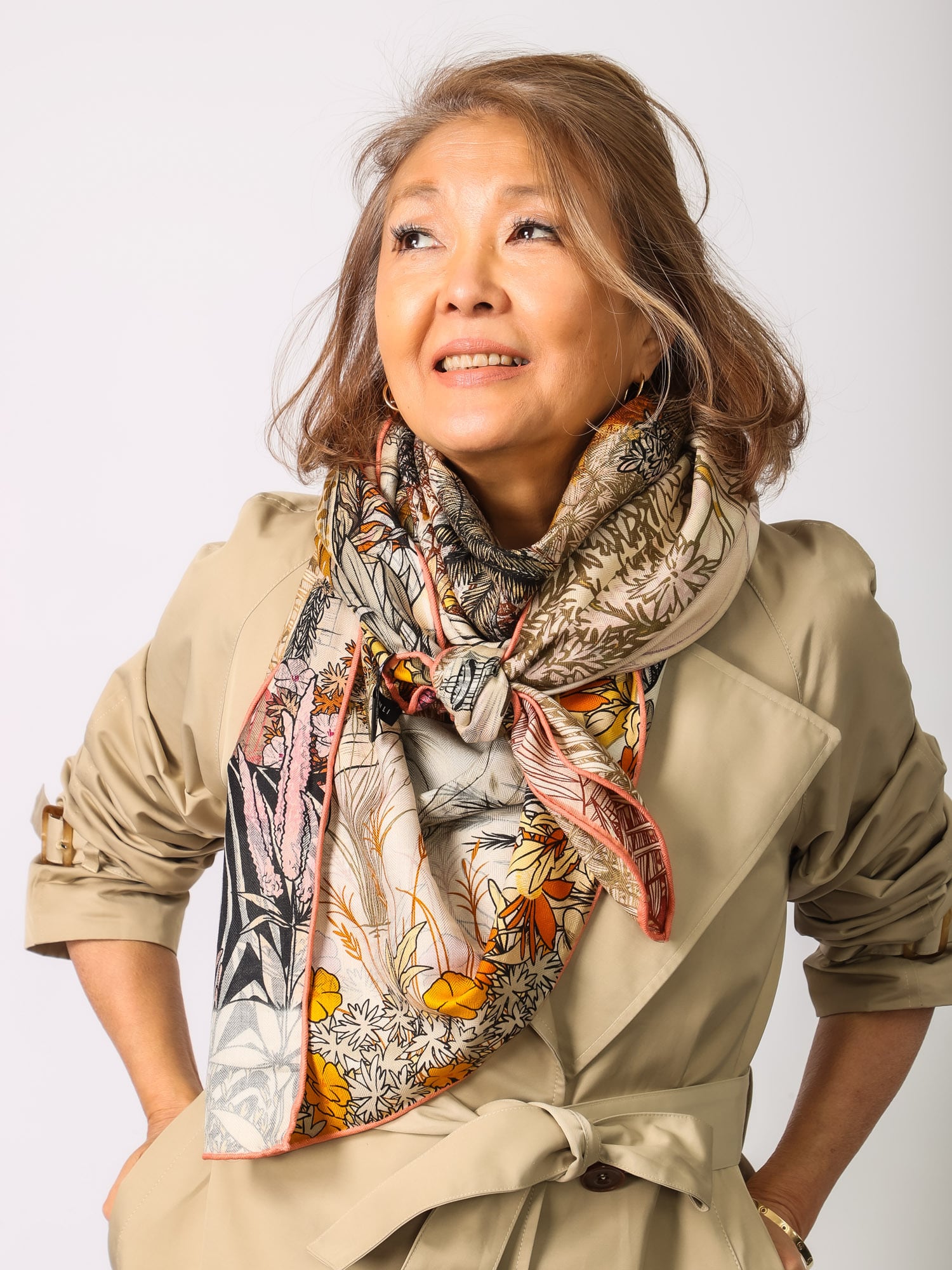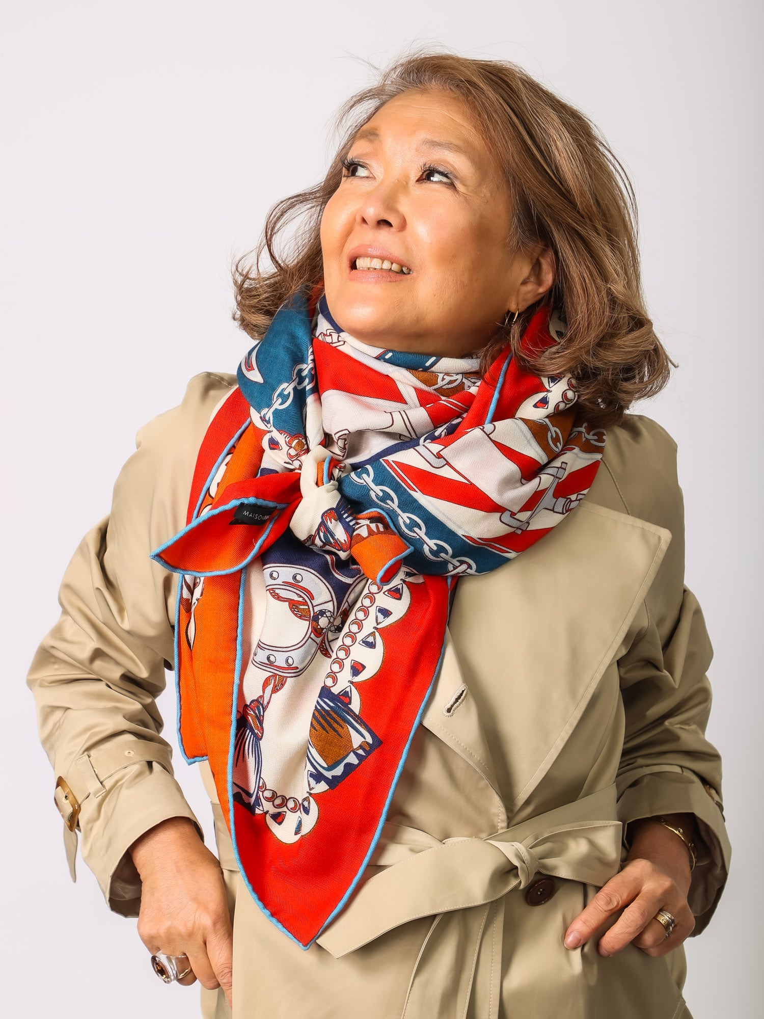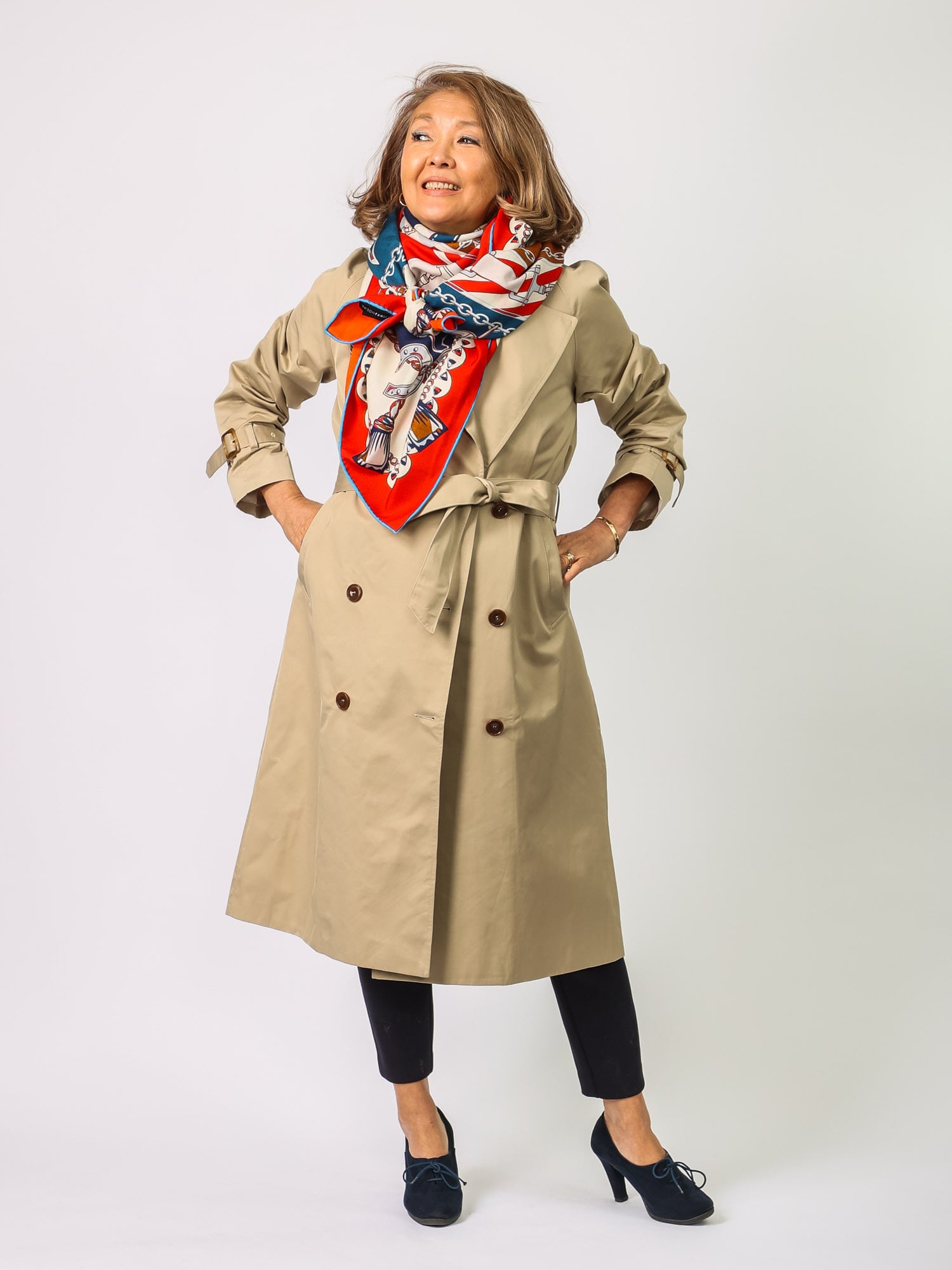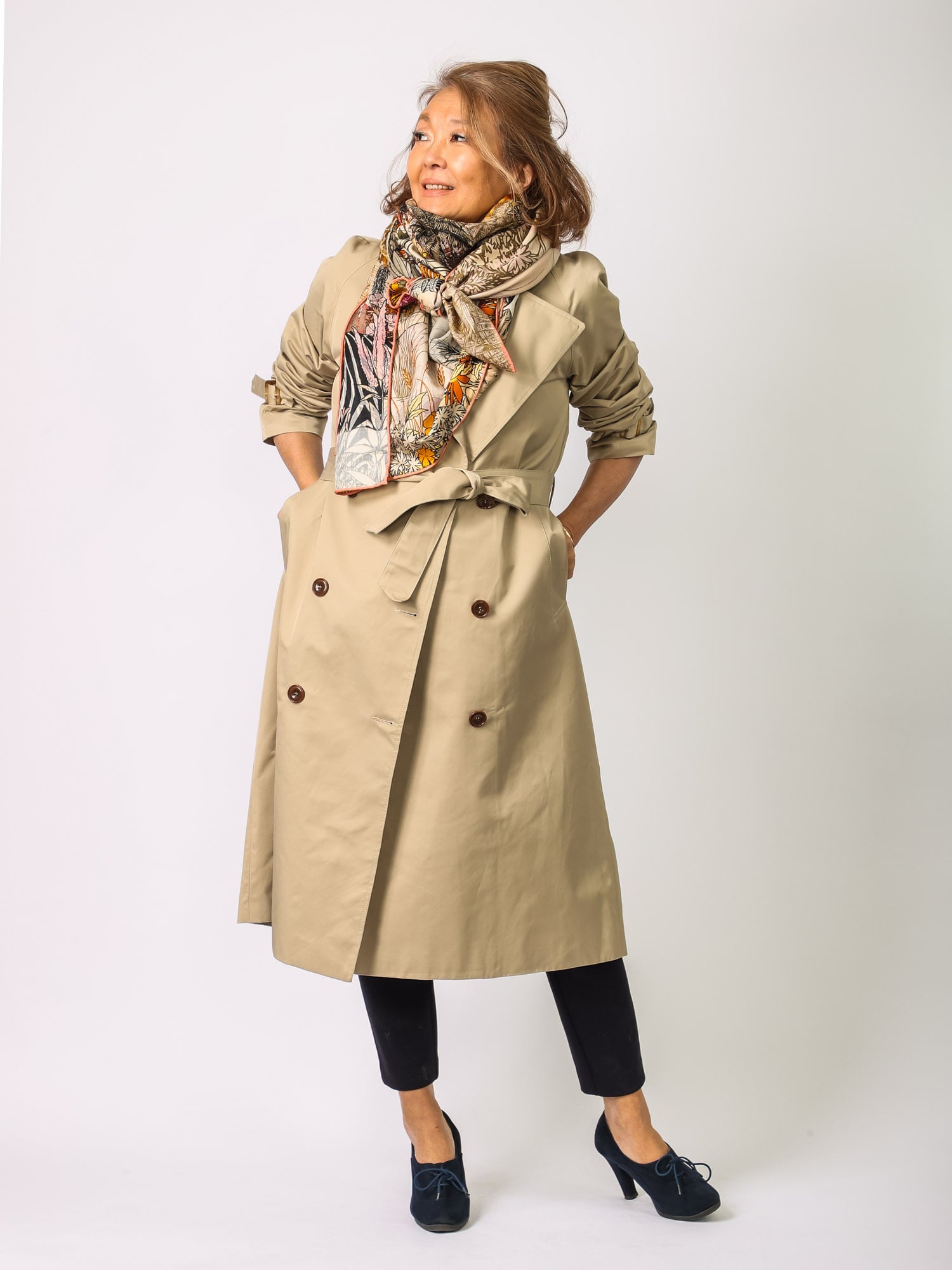 トレンチでしたら、前を三角にして結ぶと