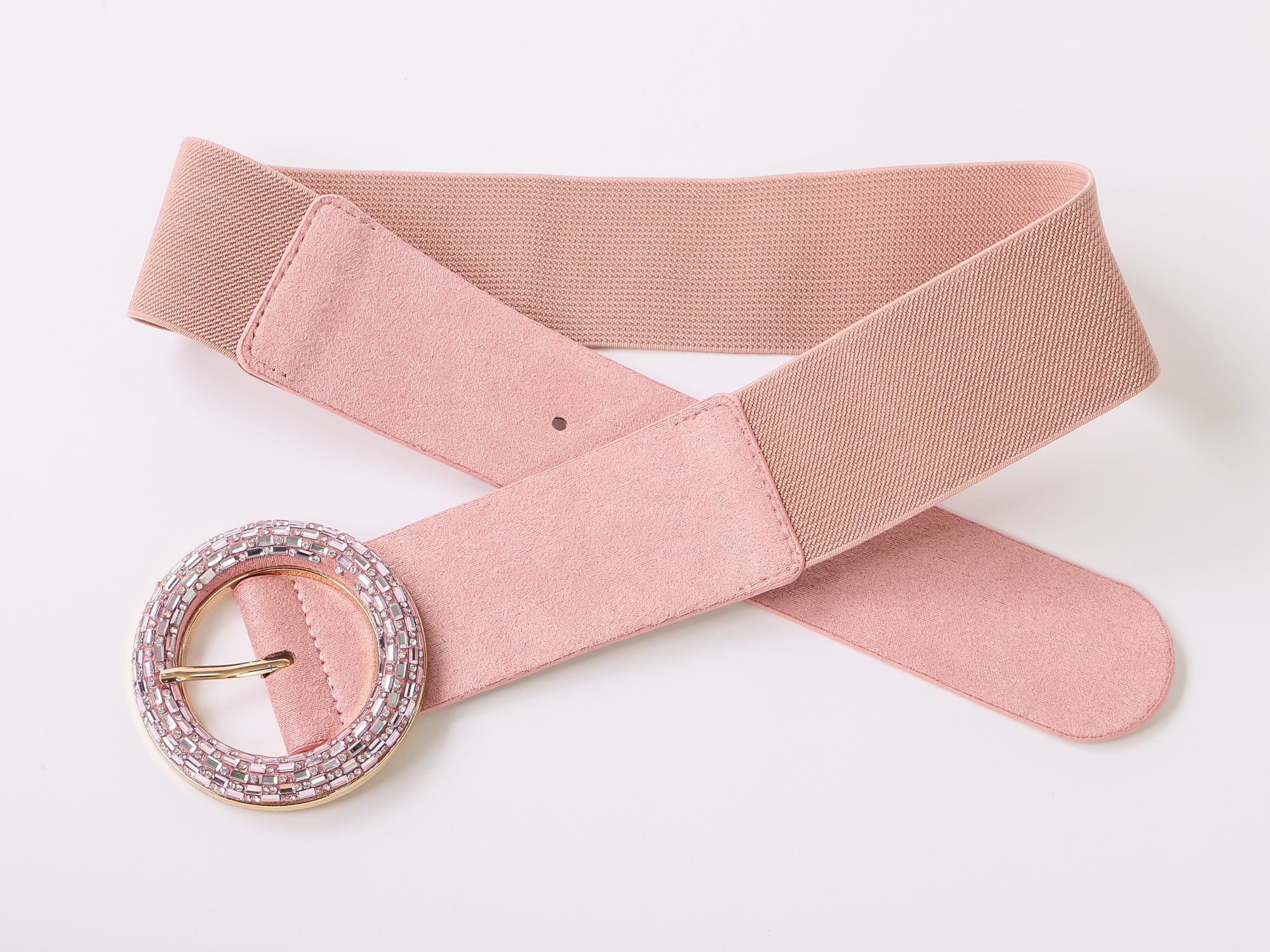人気のゴムベルトはバックルのキラキラビジューがポイント。