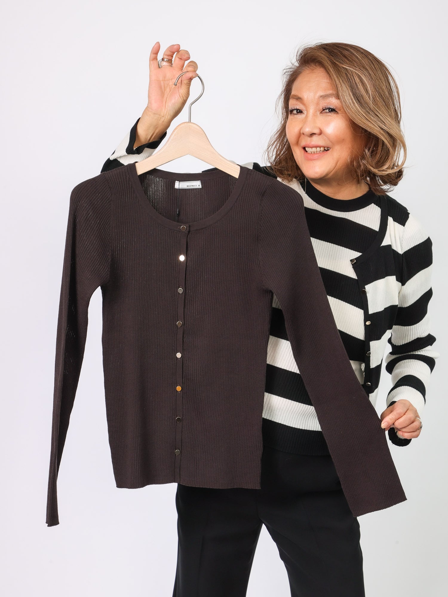 肌触りのよさを追求したオーガニックコットンとポリエステルの混紡糸を使用した、リブニットカーディガン。
