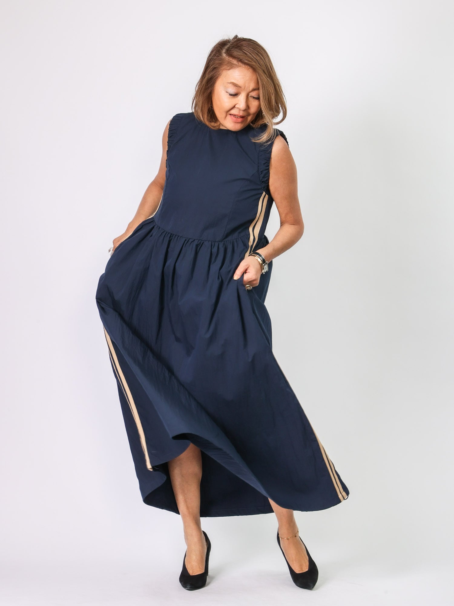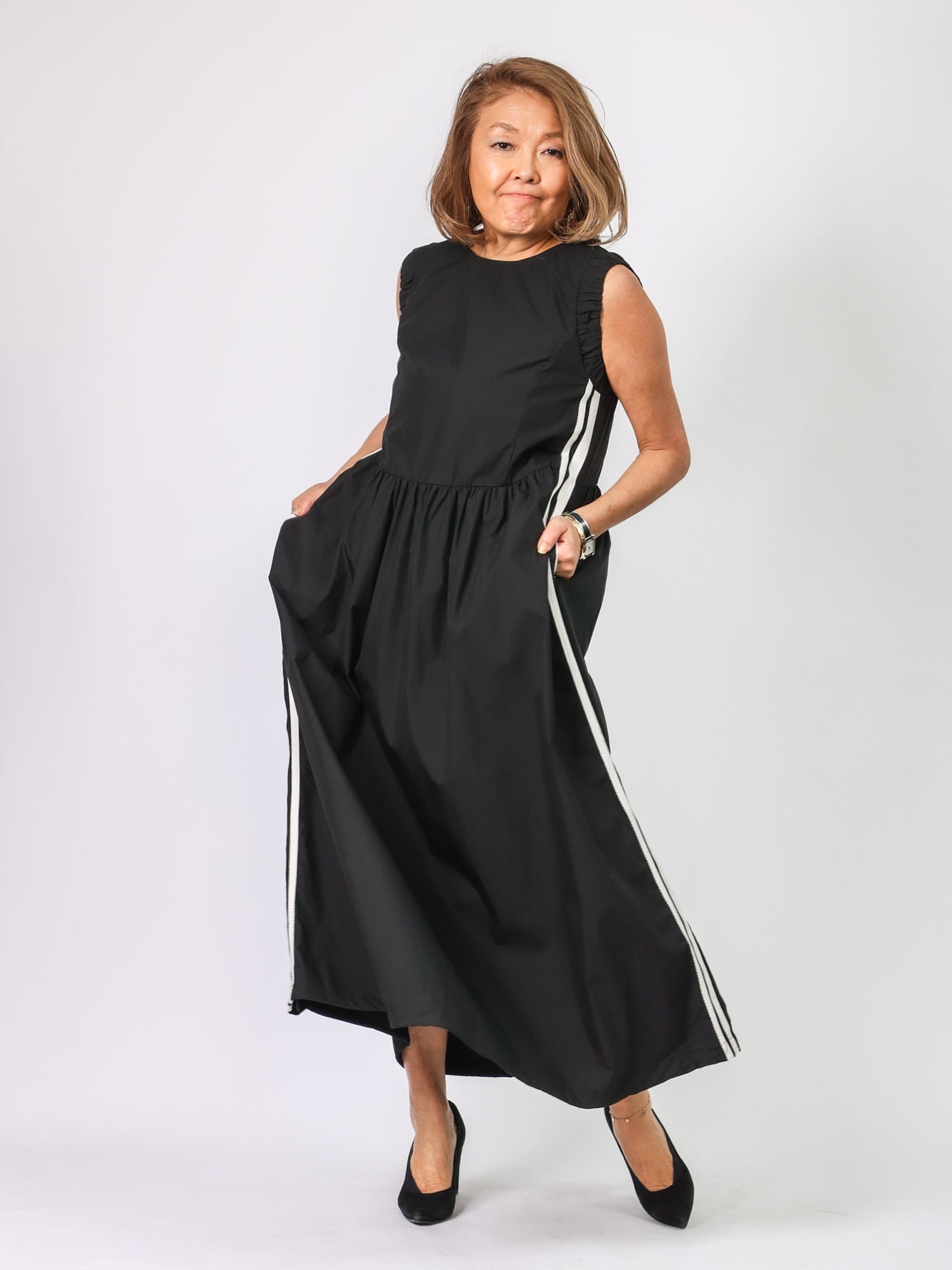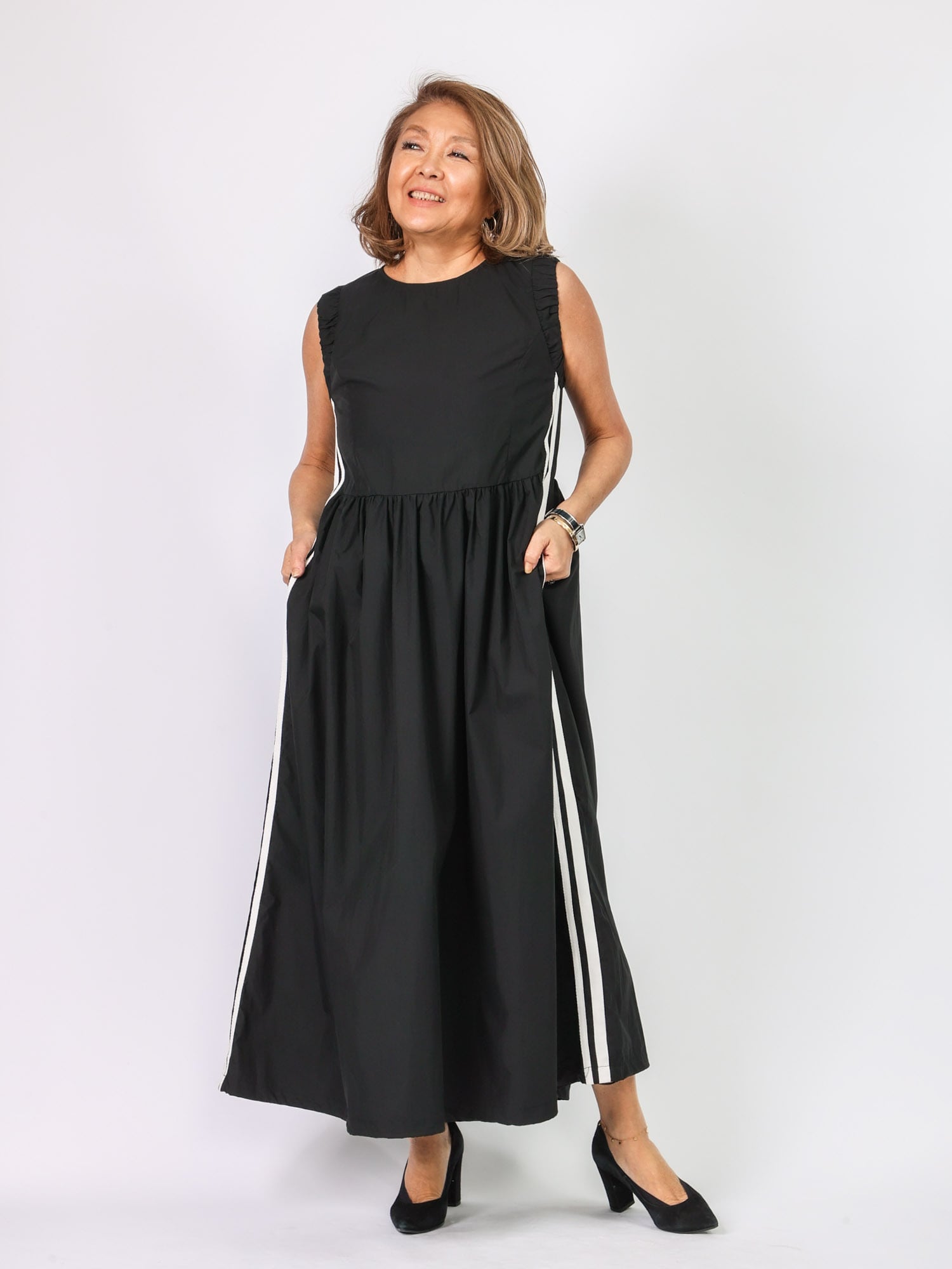 人気のライン入りワンピース。昨年よりラインの太さをアレンジ。