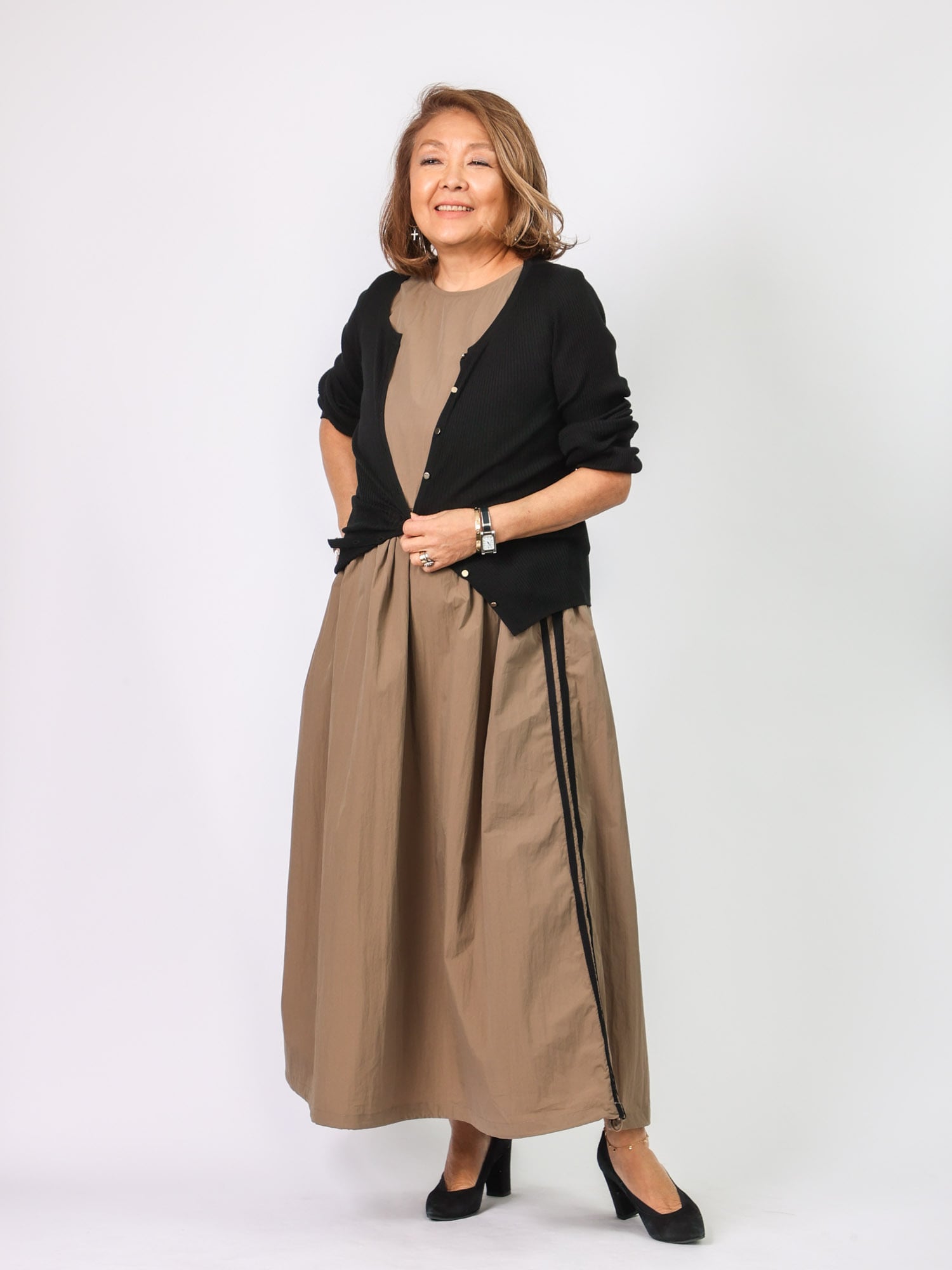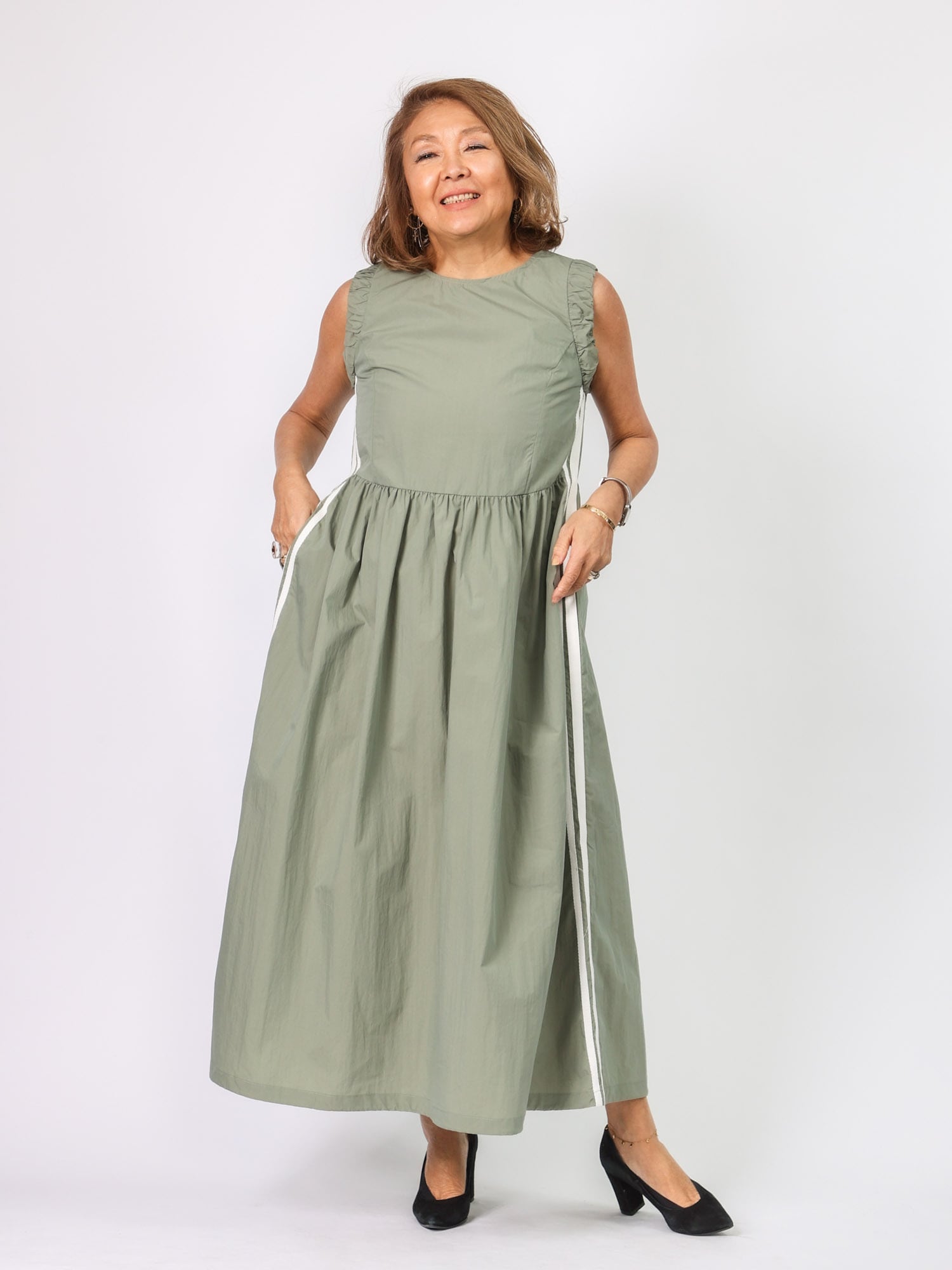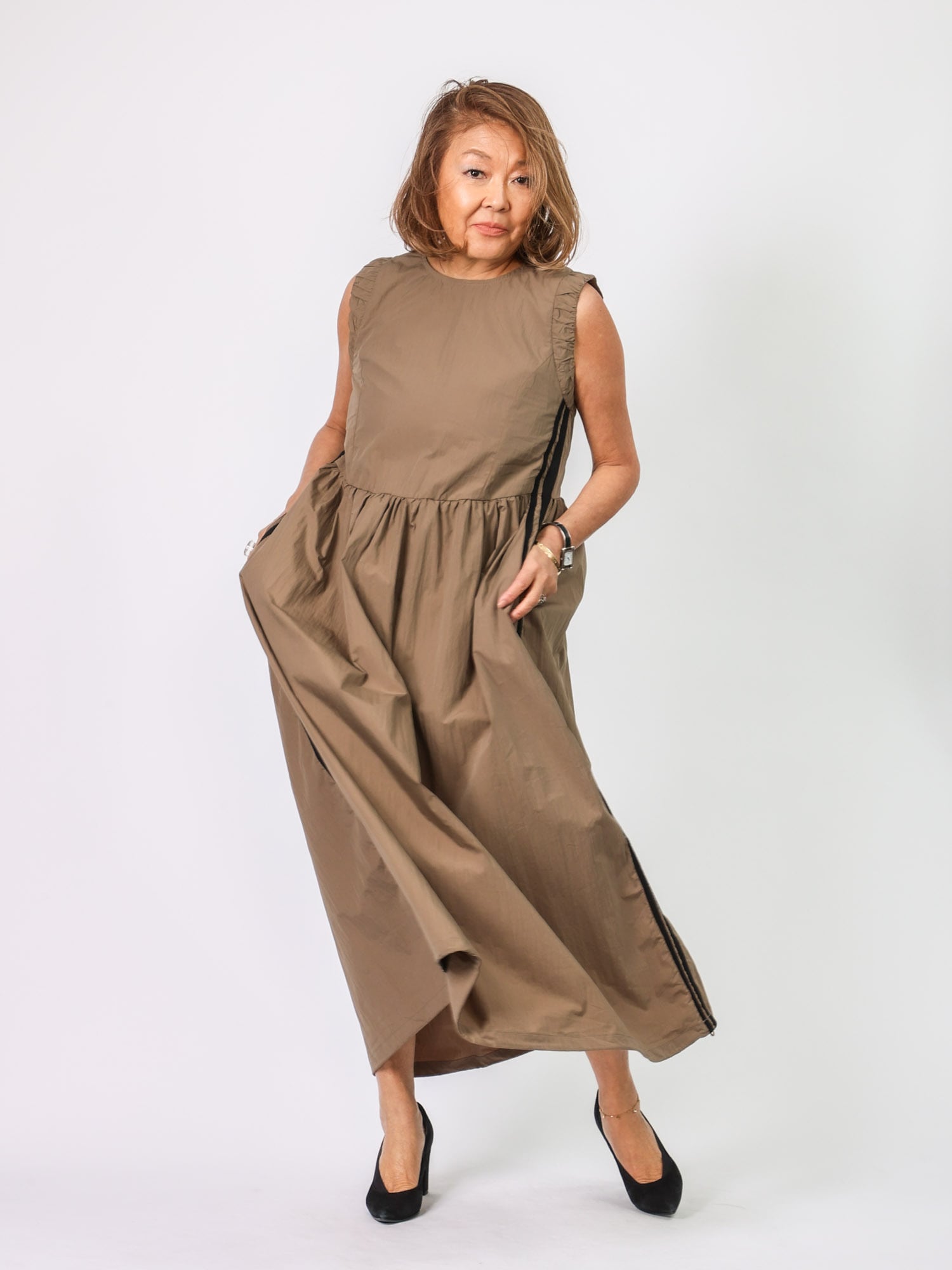 人気のライン入りワンピース。昨年よりラインの太さをアレンジ。