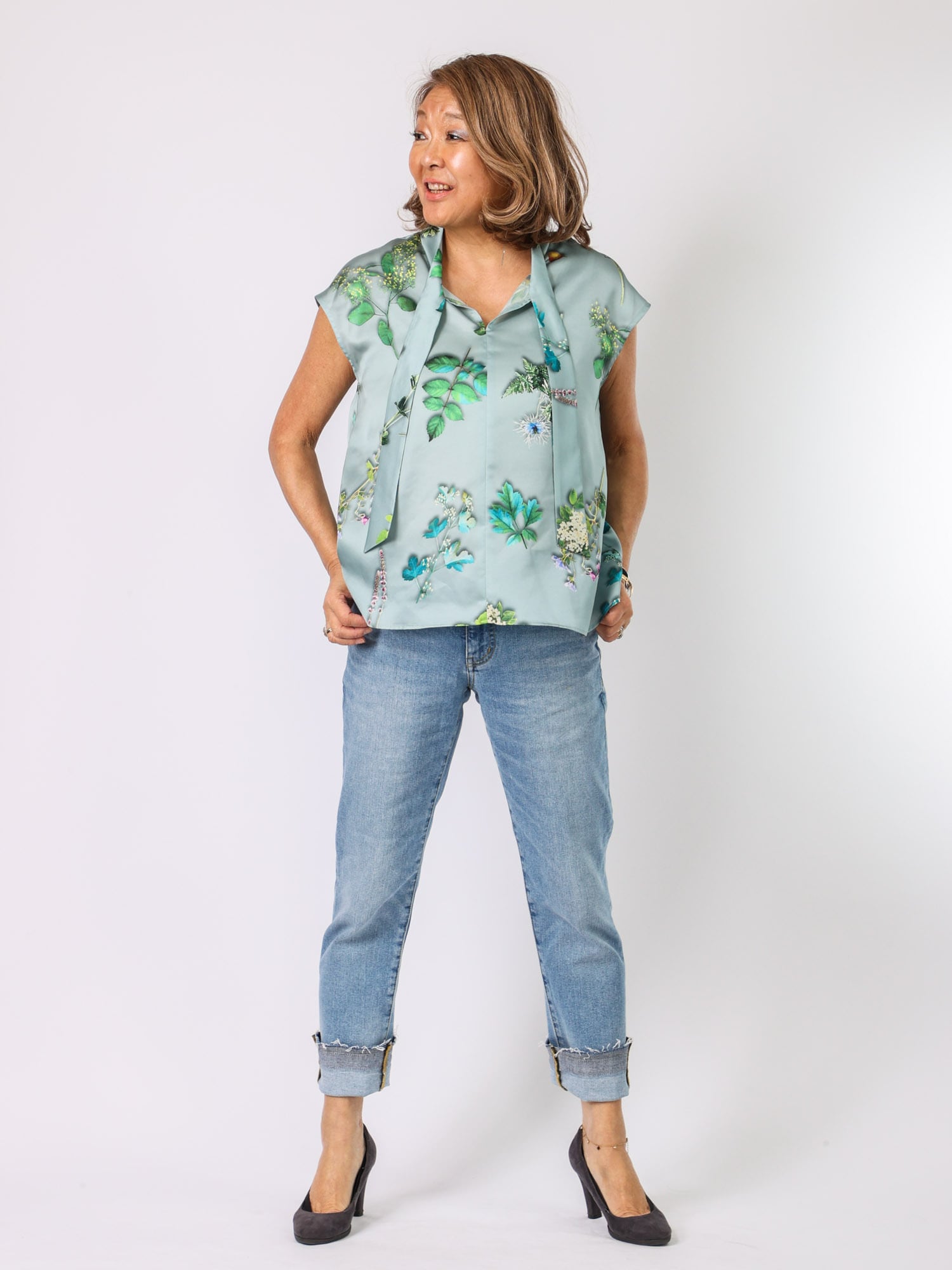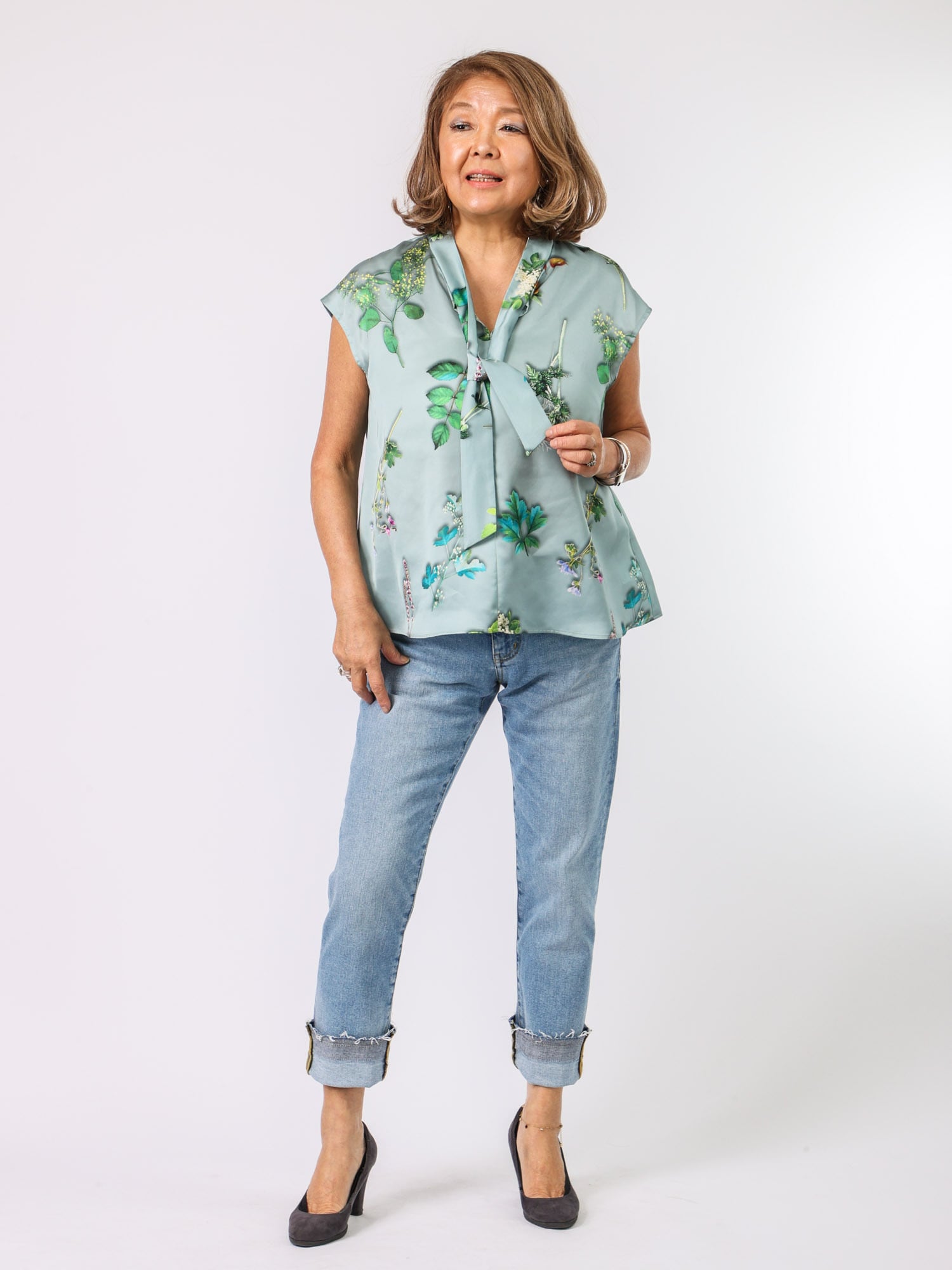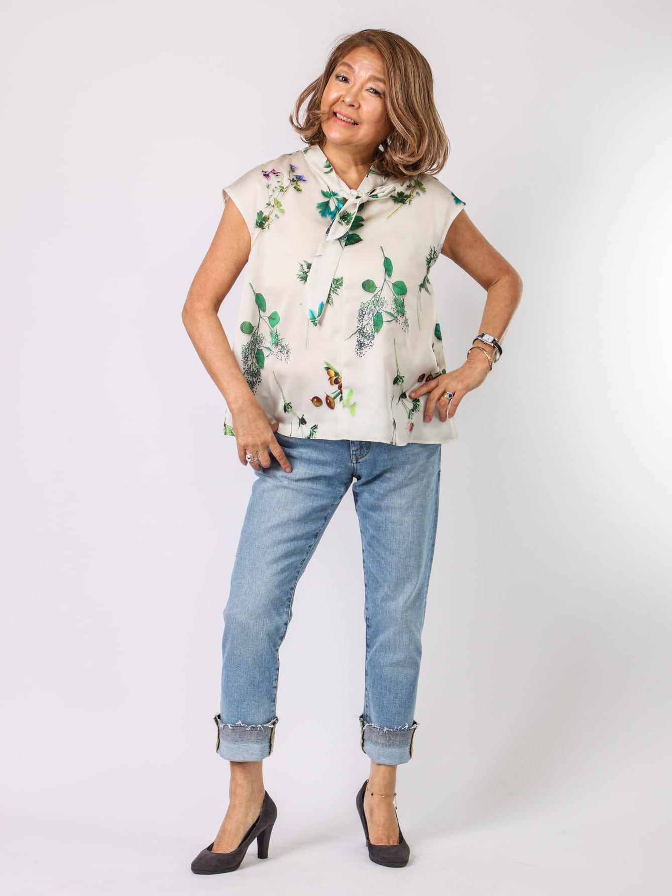 ボタニカルプリントボウタイブラウス(Mylanka)