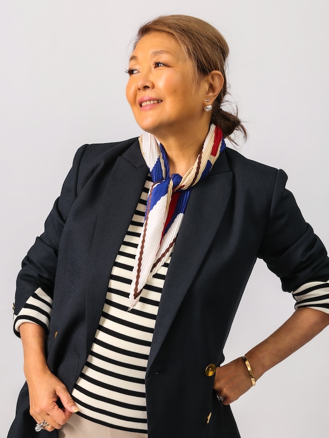 巻いても、前に垂らすだけでも◎