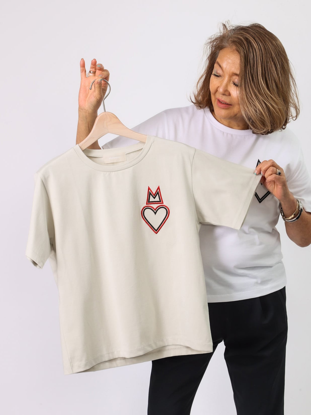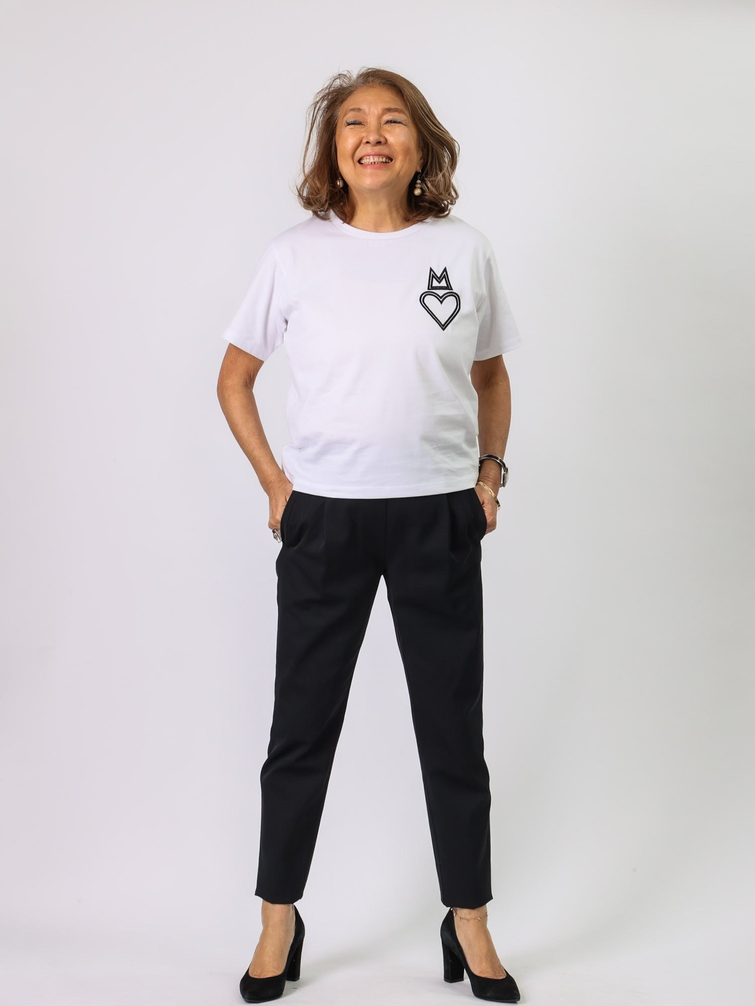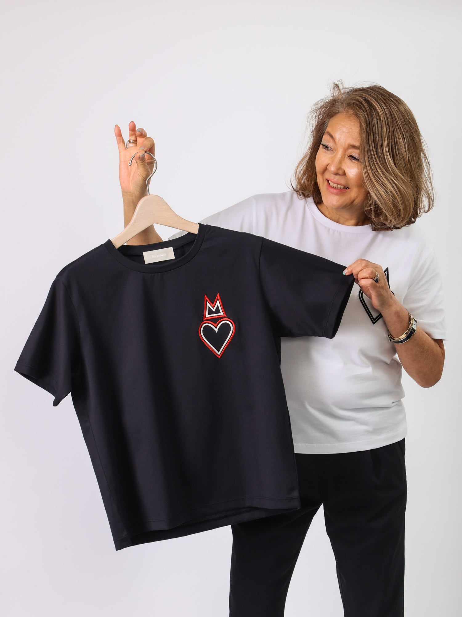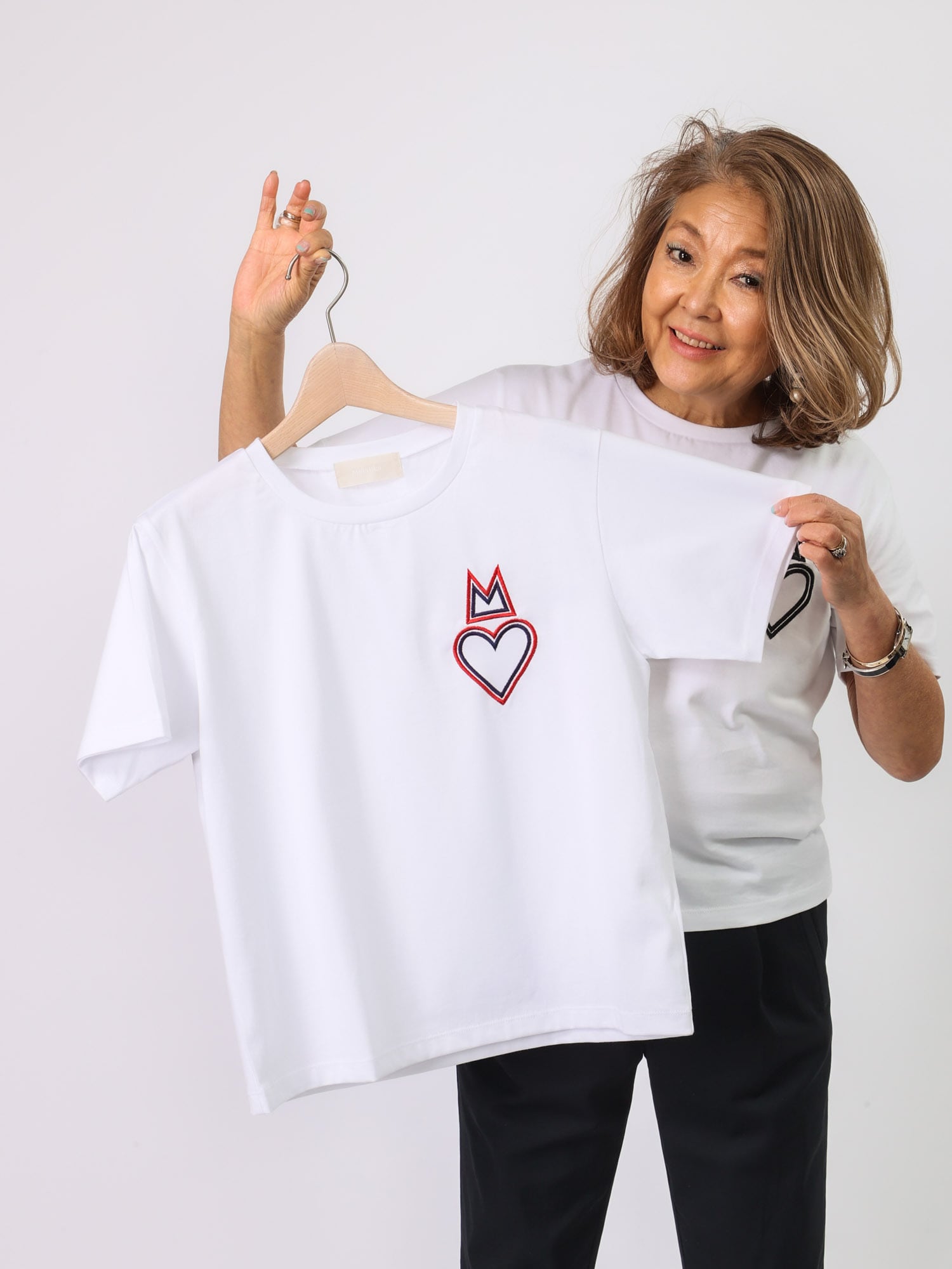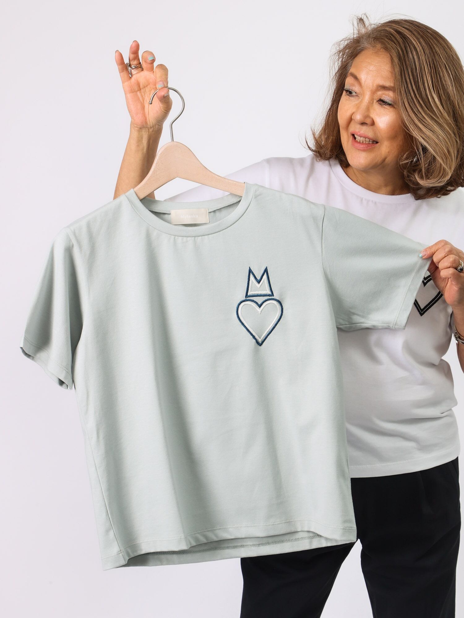 左胸にMylankaのMモチーフ+ハートのワンポイントがかわいいカットソー。