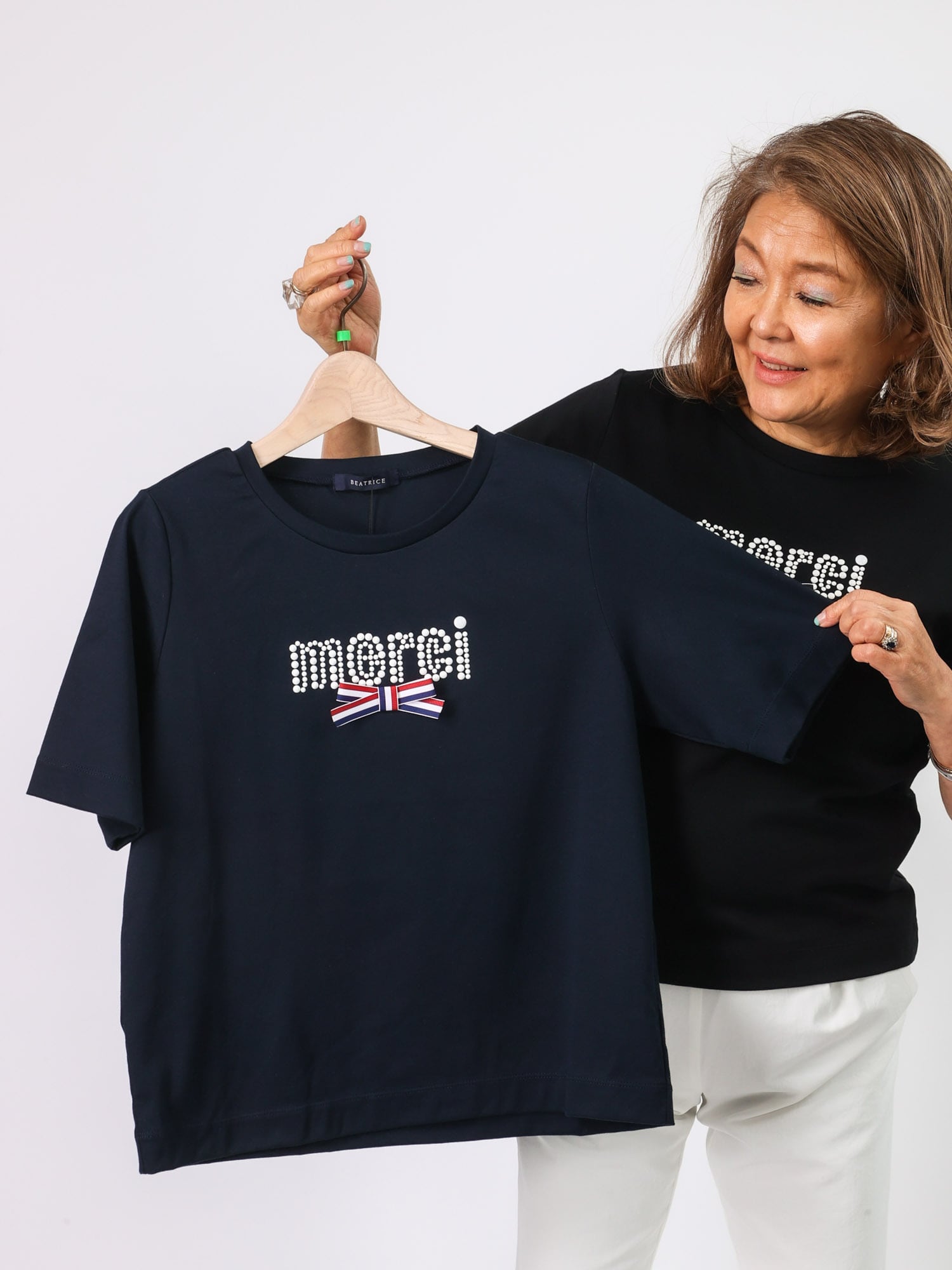 パール風ロゴリボンTシャツ(BEATRICE)